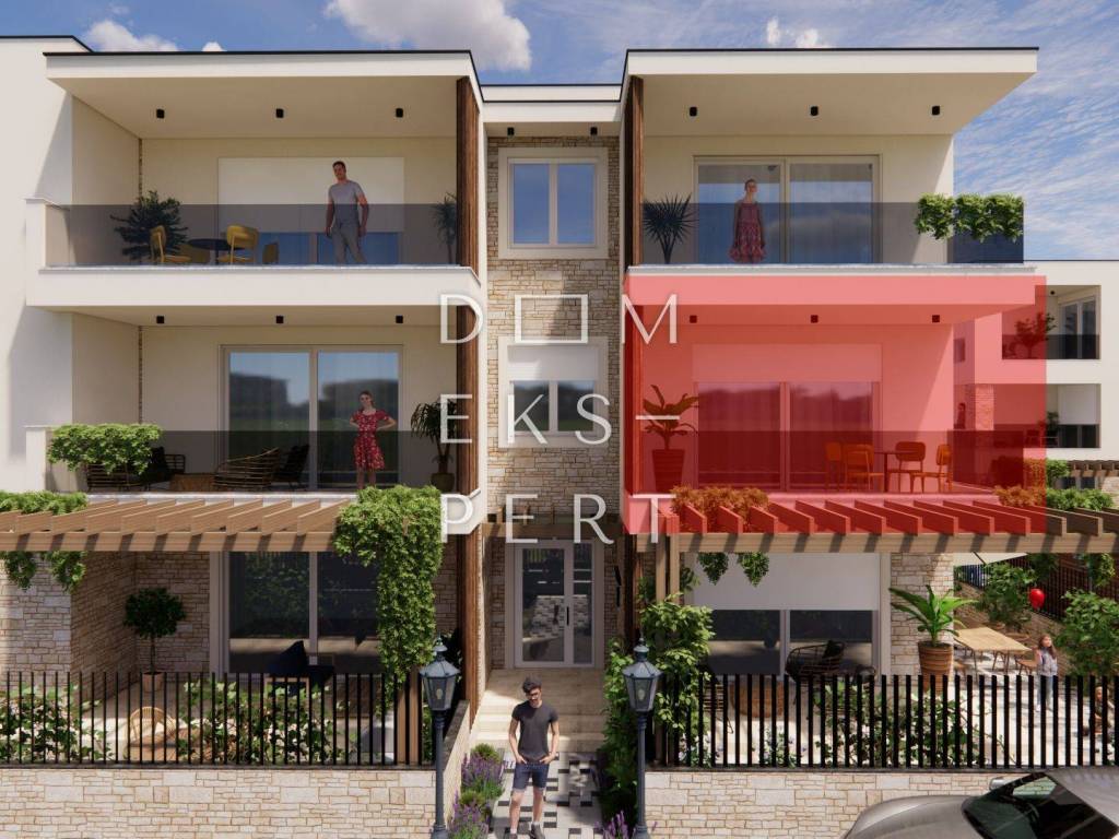 Prodaje se stan ukupne površine 103.47 m² u Brodarici pokraj Šibenika. Smješten je na prvom katu moderne zgrade unutar kompleksa od ukupno 4 objekta, na udaljenosti od 50 metara od mora.
