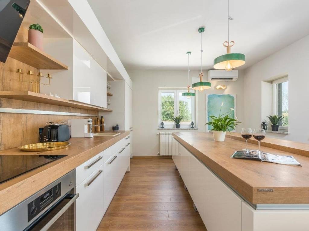 Prodaje se lijepa vila u okolici Poreča, svega 5 km od mora, stambene površine 128 m2 na okućnici od 500 m2 sa bazenom. Sastoji se od prizemlja i kata. Prizemlje kuće se sastoji od prostrane kuhinje, blagovaone i dnevnog boravka koji ima izlaz na natkrivenu terasu te u vrt. Na prvom katu nalaze se 3 spavaće sobe i dvije kupaonice. Spavaće sobe na prvom katu imaju izlaz na terasu sa koje se pruža pogled na prirodu. Više detalja na upit.