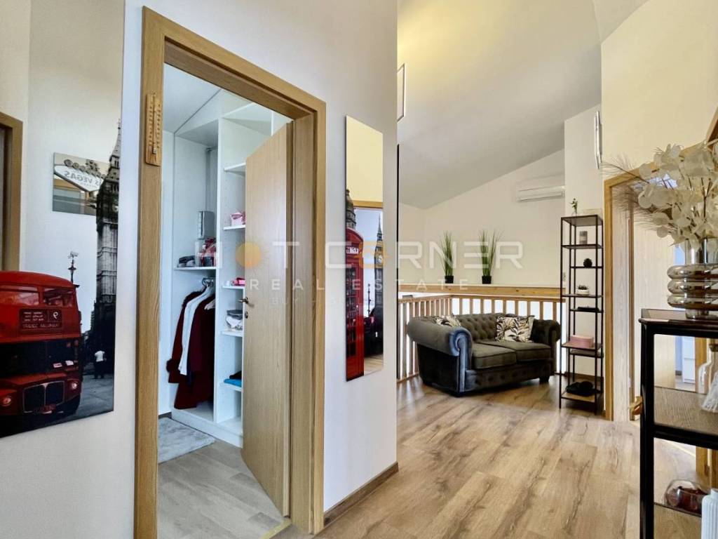 Sagrađena 2021.g, vila se nalazi na parceli ukupne veličine 535m2, a sastoji od prizemlja i kata. Ulaz u vilu kroz natkrivenu terasu. U prizemlju se nalazi prostrani dnevni boravak s kuhinjom, hodnik, spremište, kupaona s tuš kabinom. Stepenicama dolazimo na prvi kat s predsobljem u kojem se nalazi lounge zona, te tri spavaće sobe, wc s kadom i garderobna soba.