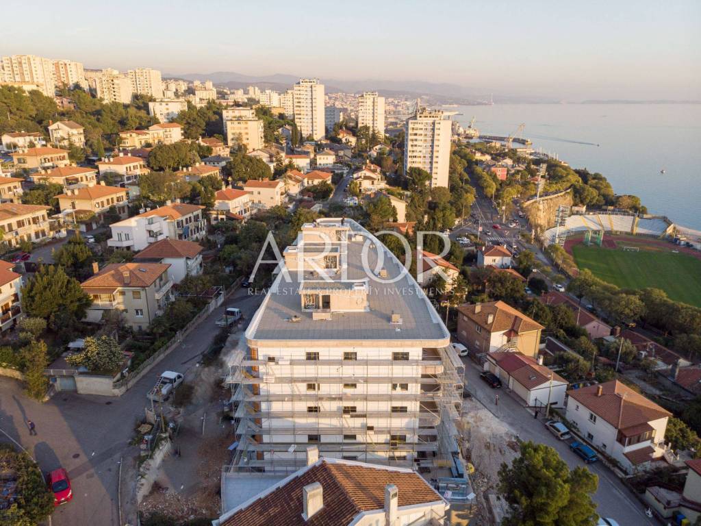 Već pri ulasku u zgradu, očarat ćete se modernim dizajnom i pažljivo odabranim materijalima koji pružaju osjećaj elegancije i luksuza. Svaki stan orijentacije je jug-sjever, sa južne strane izlazi se na balkon, dok su bočni stanovi orijentirani trostrano, sa većim otvorenim terasama.