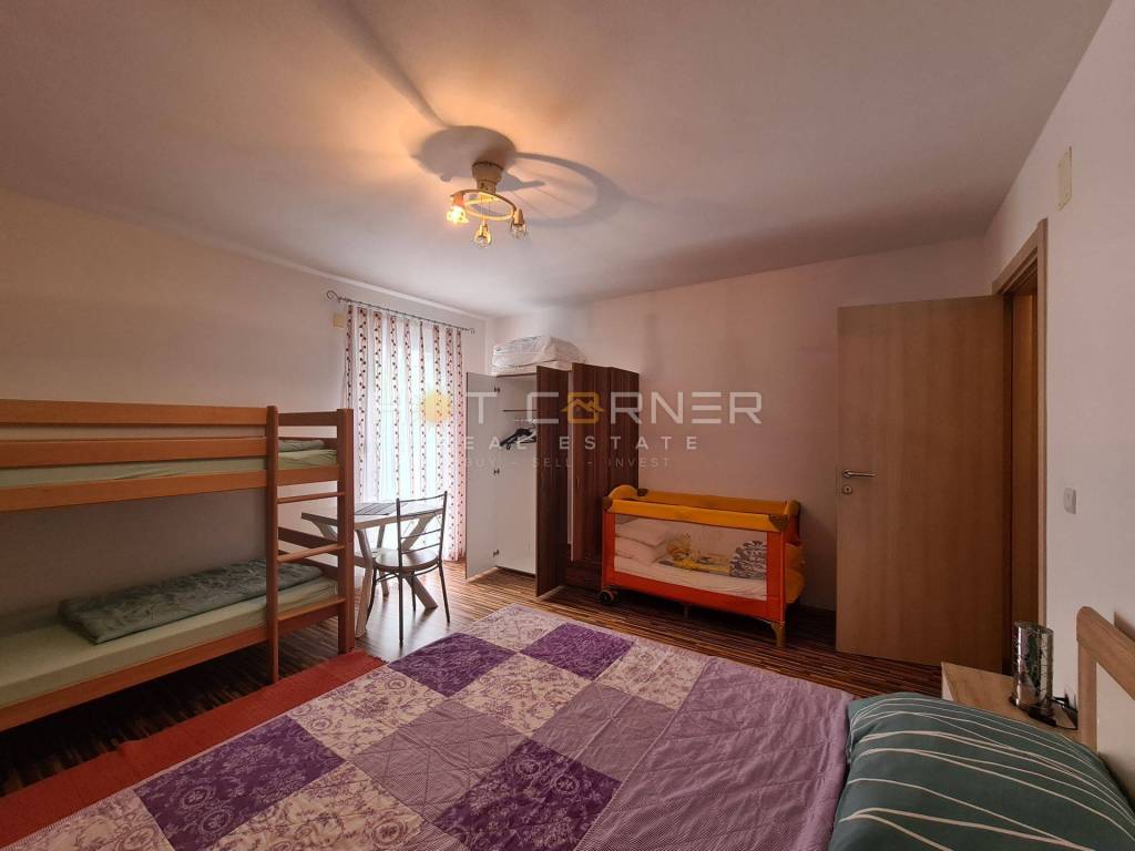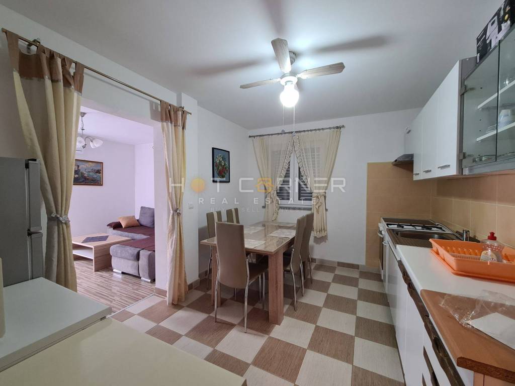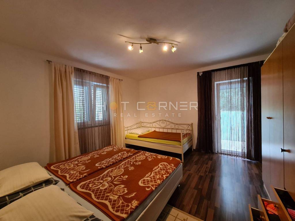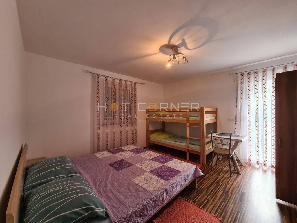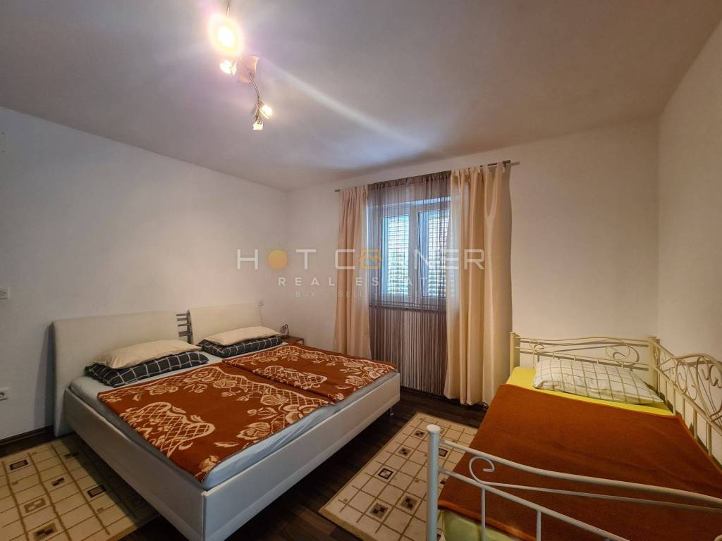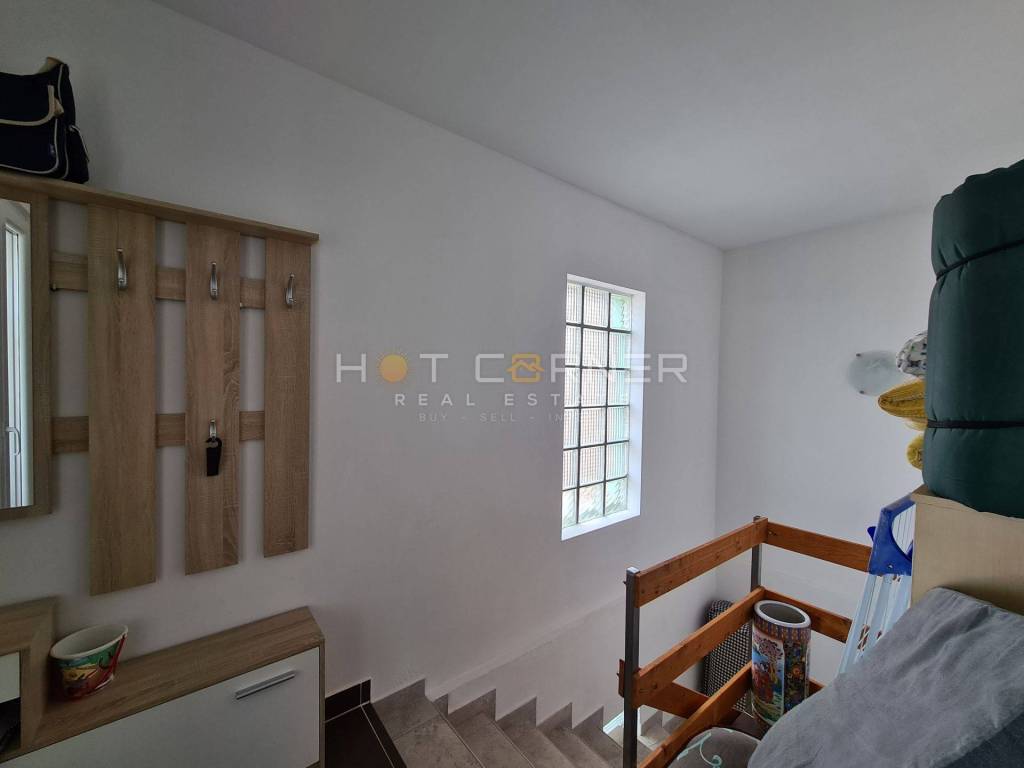 Kuća ima demit fasadu, pvc stolariju, te je u potpunosti namještena.U potkrovlju ima mjesta za još 2 spavaće sobe.
