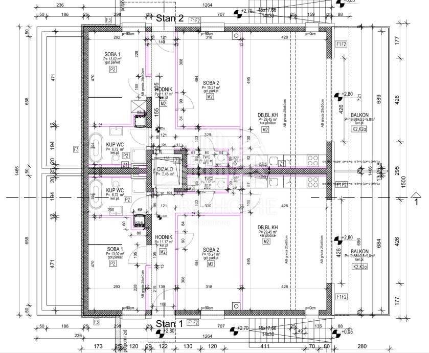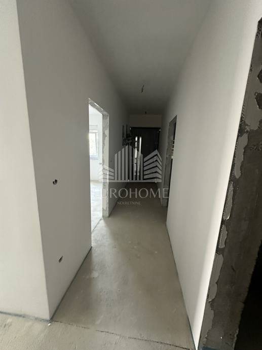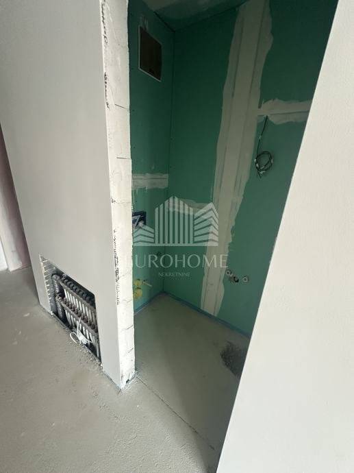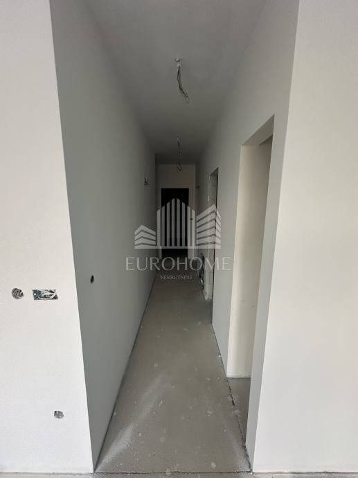 2 spavaće sobe (master soba s walk-in kupaonicom), dodatni WC, open-space dnevni boravak, kuhinju i blagovaonicu, balkon (19 m²), terasu (30 m²), privatno dvorište (30 m²), garažno i vanjsko parkirno mjesto.