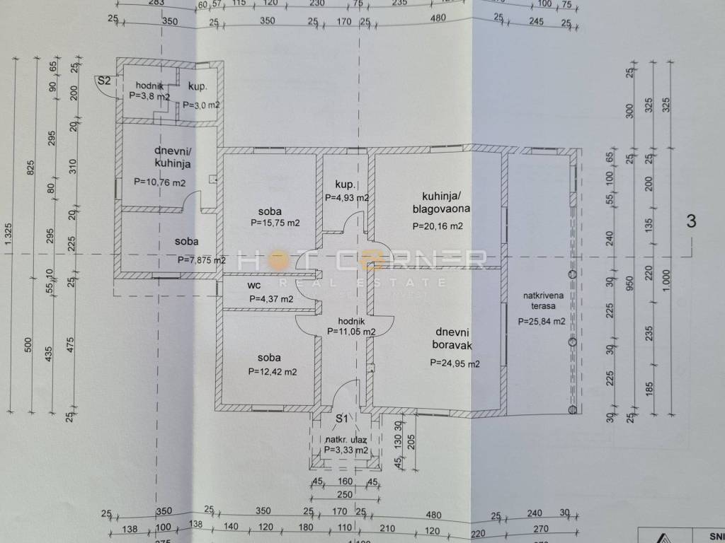 kuhinje i blagovaonice, dnevnog boravka, ulaznog hodnika, ostave i