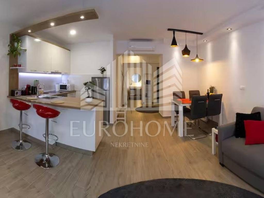 Stan se nalazi u blizini javnog prijevoza, trgovina, škola, vrtića, bolnica i drugih sadržaja. Mirno okruženje uz odličnu prometnu povezanost čini ga idealnim za stanovanje, ali i kao investiciju za nastavak turističkog iznajmljivanja.
