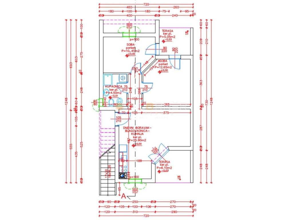 na terasu.Tu se još nalazi kupaonica, te 2 spavaće sobe, svaka sa svojom