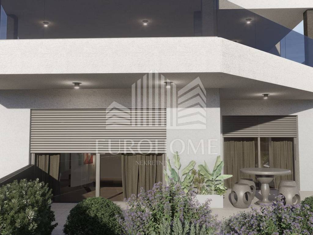 Stan i zgrada izvedeni su korištenjem materijala najviše kvalitete, s naglaskom na energetsku učinkovitost i udobnost stanovanja. - PVC stolarija antracit boje s elektro podizačima roleta i komarnicima - Dizalice topline i klima uređaji u kombinaciji s podnim grijanjem - Visokokvalitetni parket i vrhunska keramika - Fasadni sustav visoke otpornosti i izolacije - Protupotresna gradnja - Protuprovalna vrata - Električne rolete - Podno grijanje
