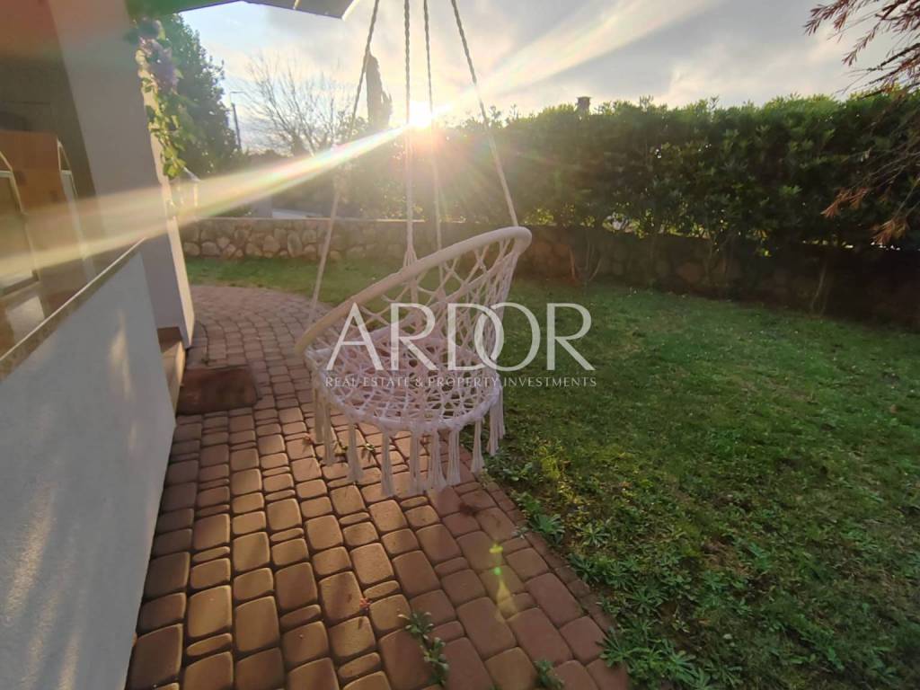 Prodaje se dvosobni stan s dnevnim boravkom u prizemlju urbane vile u Malinskoj na otoku Krku. Stan ukupne površine 74 m² sastoji se od prostranog dnevnog boravka, dvije spavaće sobe, kupaonice, natkrivene terase i ostave. Pripada mu i ograđena okućnica površine 100 m² te vlastito parkirno mjesto, što ga čini pogodnim za boravak s kućnim ljubimcima.