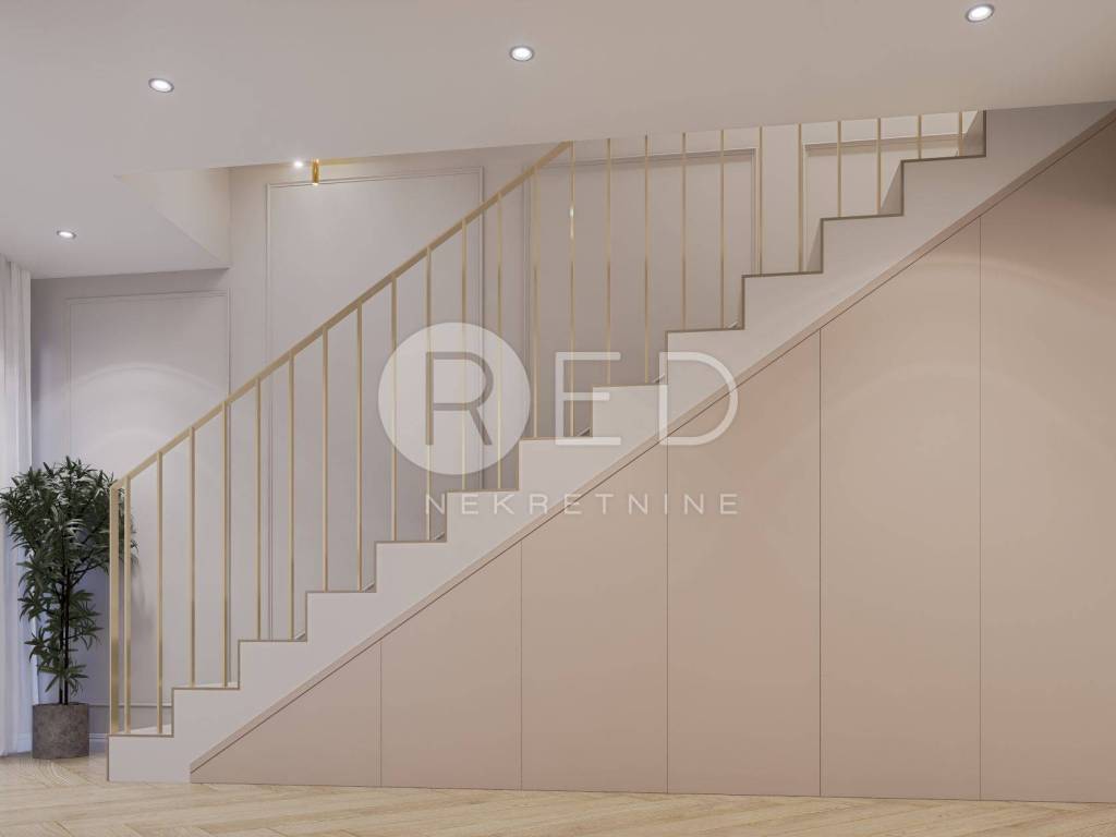 Gornja etaža rezervirana je za mir i privatnost te obuhvaća četiri spavaće sobe, kupaonicu i balkon površine oko 8 m2. Prostor je svijetao, prozračan i praktično organiziran, s posebnim naglaskom na udobnost svakodnevnog života.