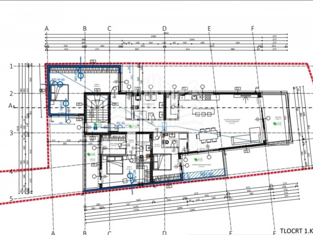 Kuhinja i blagovaonica , Dnevni boravak, Tri spavaće sobe, Garderoba, Tri kupaonice i 3WC, Hodnik, Balkon, Lođa