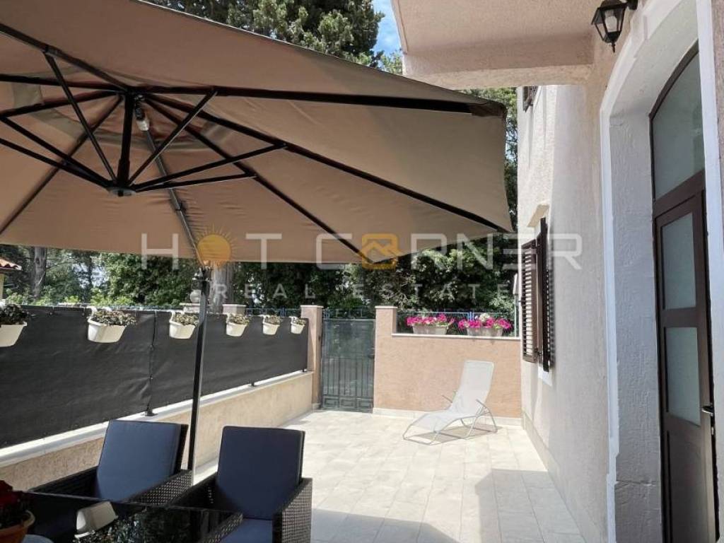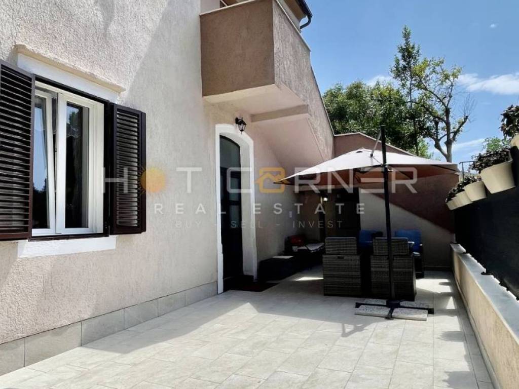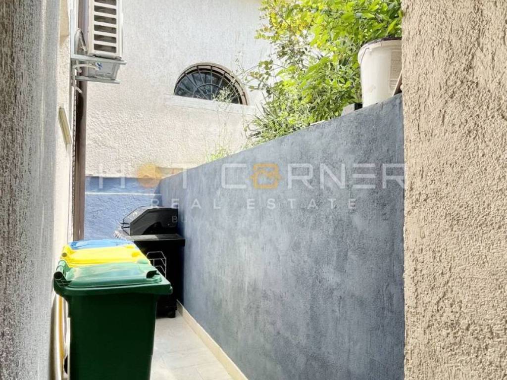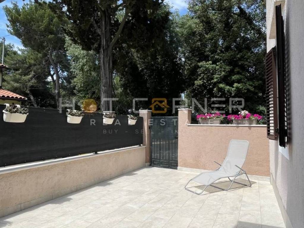 Stanu pripada prostrani vrt ispred ulaza, savršeno mjesto za druženje, roštiljanje i odmor. Dvorište je jugoistočne orijentacije, sobe su sjeverozapadno orijentirani, što daje prostoru dodatno svježinu.