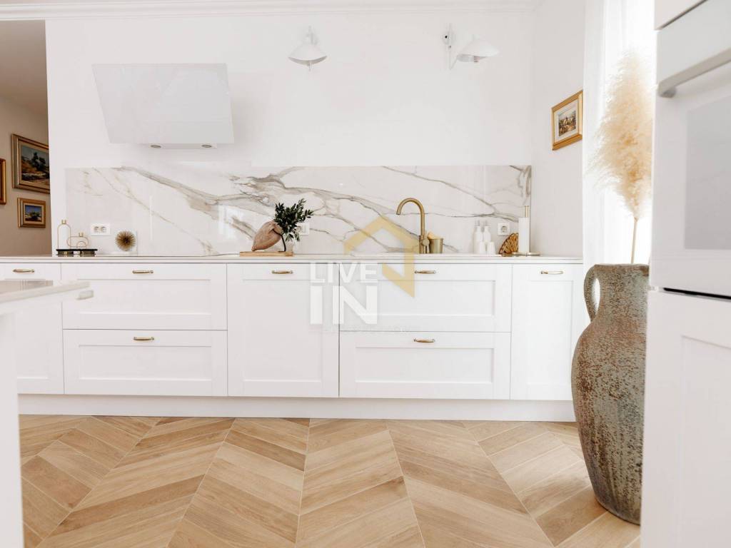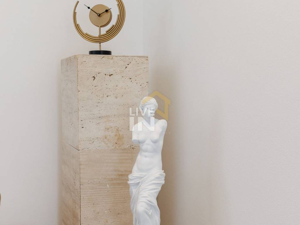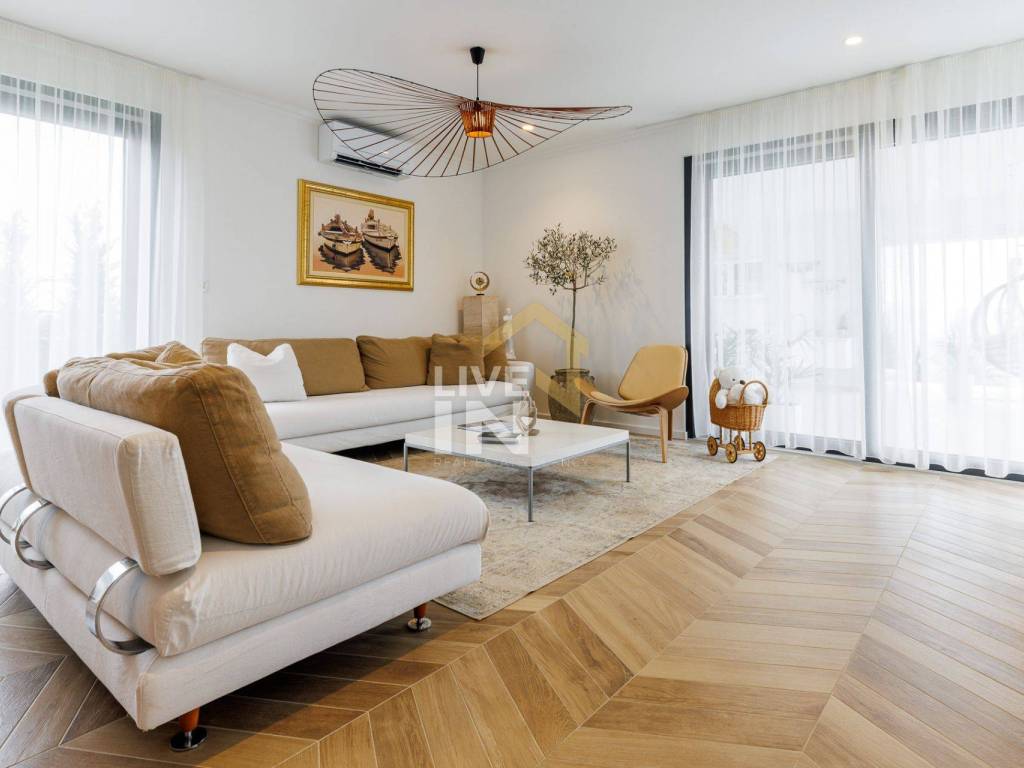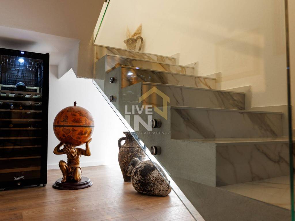 Unutrašnjost vile raspoređena je na tri etaže, svaka veličine cca 130 m2. U jedinstvenom interijeru prepoznaje se moderna klasika inspirirana talijanskim dizajnom. Završni detalji ono su čime ova raskošna mediteranska ljepotica zaustavlja dah pružajući svojim gostima osjećaj topline doma uz istovremeni dojam prostranosti i luksuza.