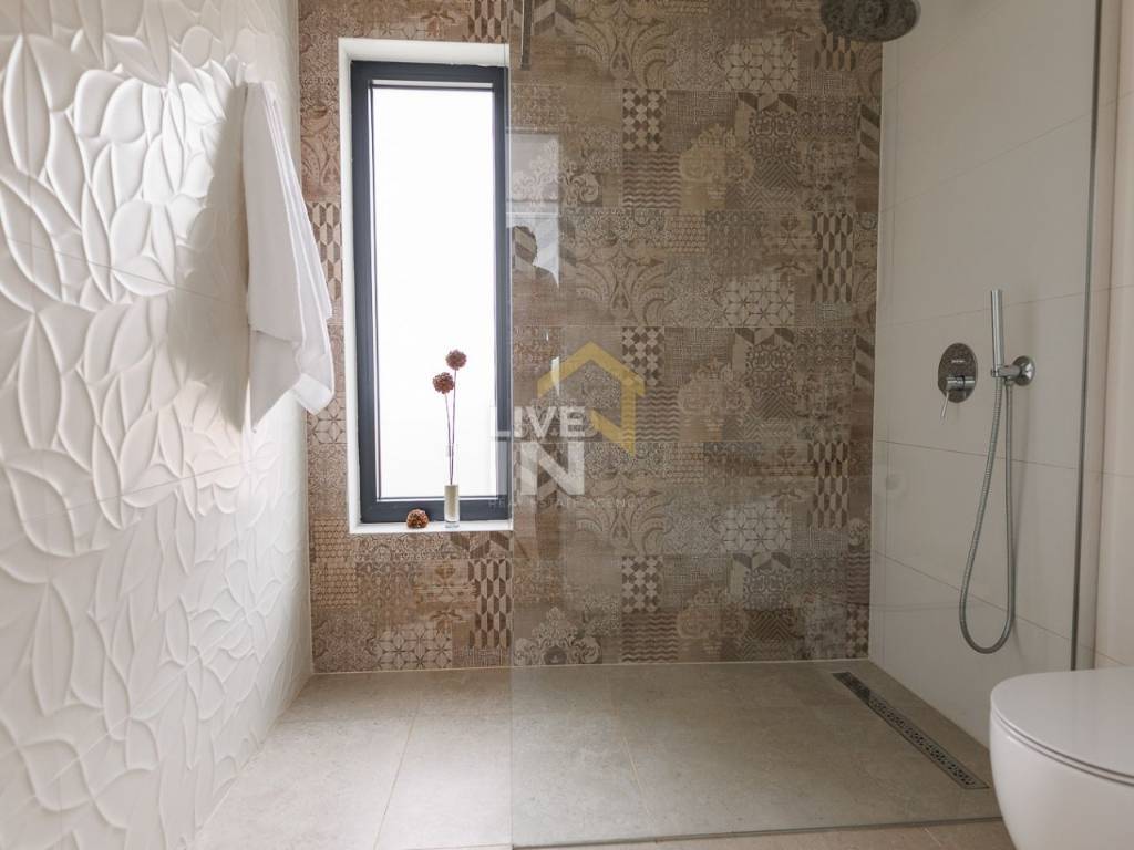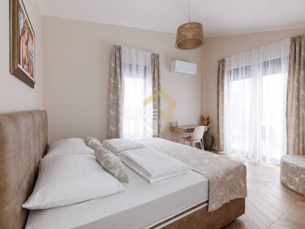 Na katu se nalazi master spavaća soba (20 m2) s en suit kupaonicom i raskošnom terasom (20 m2) koja uključuje vanjski jacuzzi te dodatne dvije sobe, jedna je s bračnim krevetom, en suit kupaonicom i privatnom terasom, a druga s odvojenim krevetima i odvojenom kupaonicom.