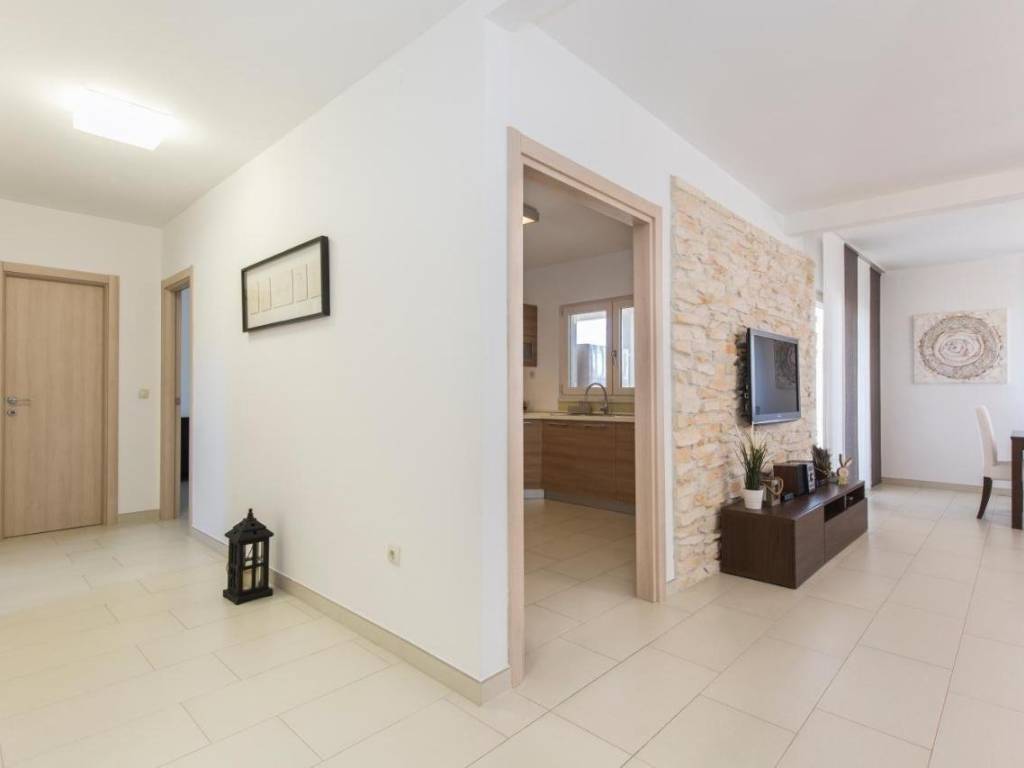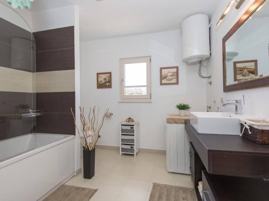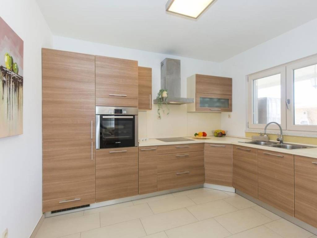 Dnevni boravak i blagovaona imaju direktan izlazak na natkrivenu terasu te dvorište, gdje možete uživati u ljetnoj kuhinji i roštilju.