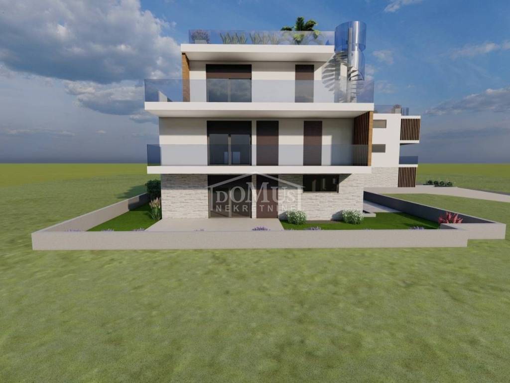 Vodice, u blizini plaže Hangar, nalazi se novoizgrađena luksuzna stambena zgrada u rohbau fazi s 12 stambenih jedinica. Zgrada ima ukupno tri etaže: prizemlje, prvi kat i drugi kat. Zgrada je moderno uređena s podnim grijanjem u kupatilima i dnevnom boravku, visokokvalitetnim podovima i unutarnjim uređenjem, klima uređajima za u svakoj prostoriji, te električnim roletama.