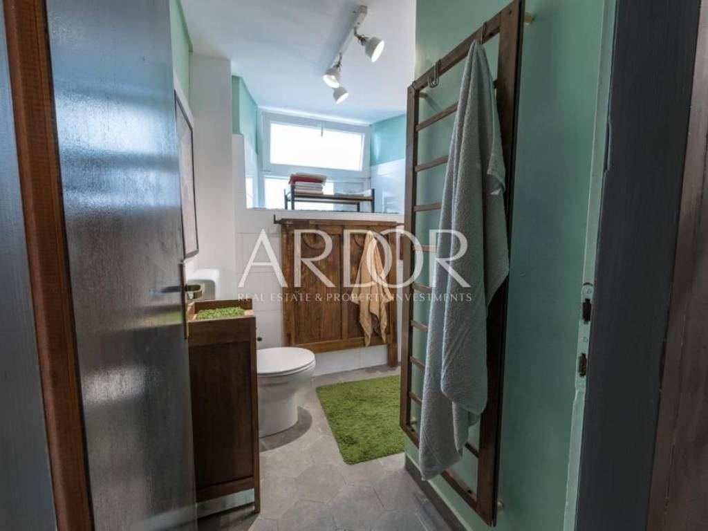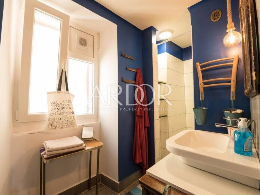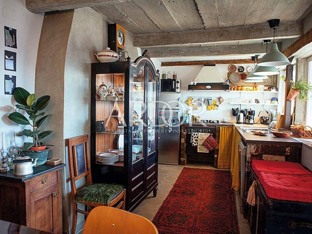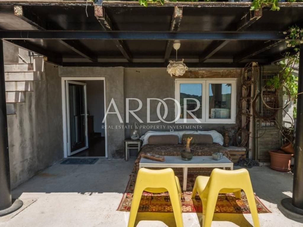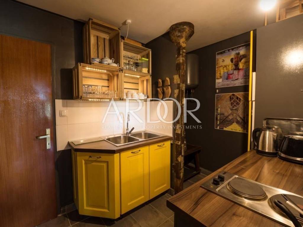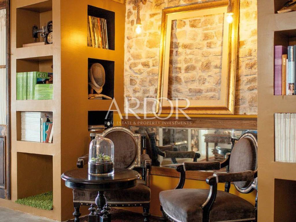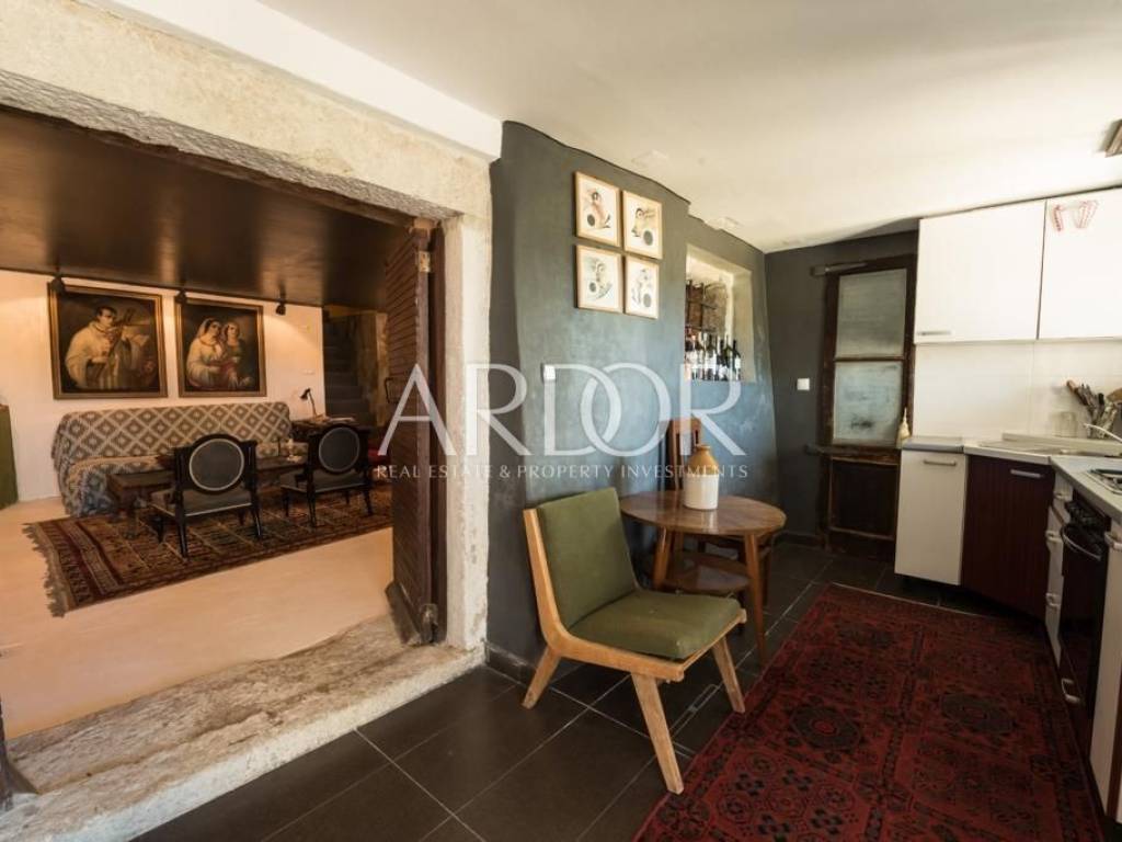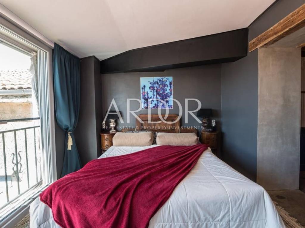 Interijer je raspoređen na tri etaže i uređen u rustikalnom stilu s mnogo drvenih detalja i antiknog namještaja. Na svakoj etaži je po jedan stan sa svojim ulazom izvana ali iako zasebne jedinice funkcioniraju kao jedan prostor, povezan unutarnjim stubištem uz dvije terase i mali vrt.