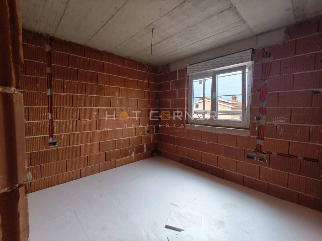 Na prodaju lijep trosoban stan u modernoj novogradnji u Valdebeku u Puli. Stan se nalazi na 2.katu manje stambene zgrade na mirnoj lokaciji, stambene površine oko 54,48m2 te se sastoji od 2 spavaće sobe (10,12m2 te 6,86m2), dnevnog boravka, blagovaone i kuhinje (24,11m2) sa izlaskom na loggiu površine 5,64m2 i kupaonice 4,85m2, te hodnika 4,31m2. Stan ima na isključivo korištenje i krovnu terasu površine 45m2, na kojoj je predviđena mogućnost ugradnje jacuzija te roštilja.
