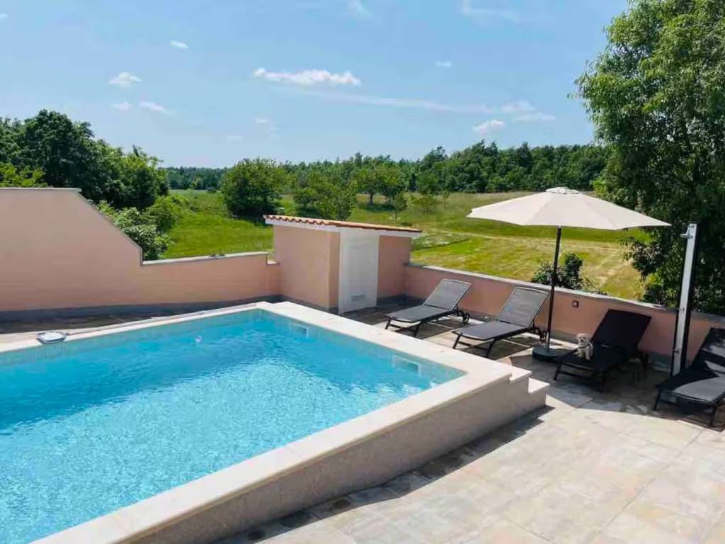 U okolici nedaleko Barbana na mirnoj lokaciji smijestila se samostojeća kuća s bazenom s dva stana površine 140 m2 na prostranoj okućnici površine 850 m2 s 4 parkirna mjesta od čega dva natkrivena.