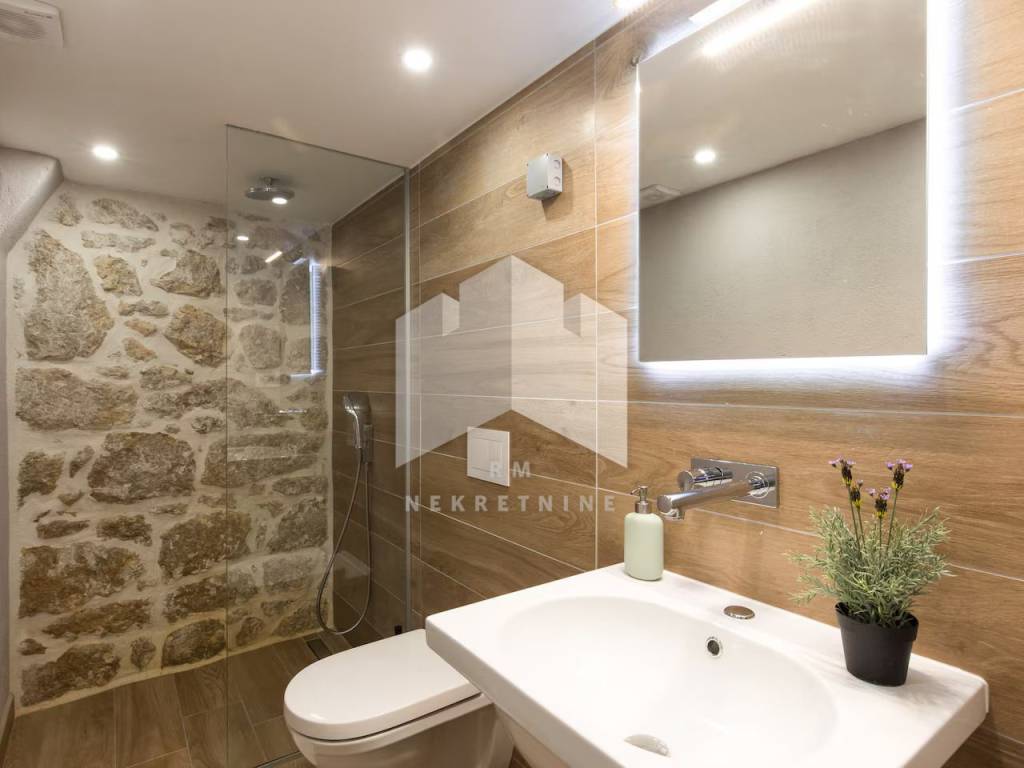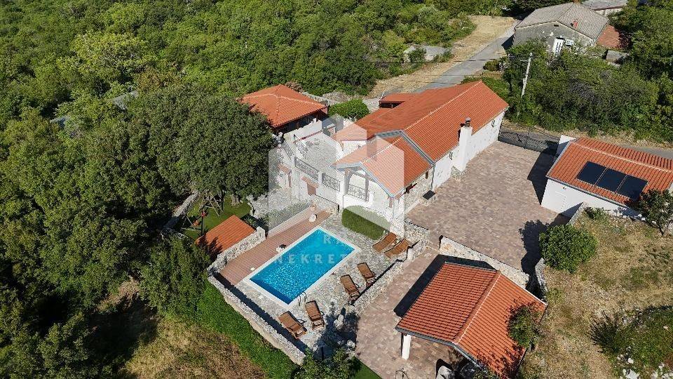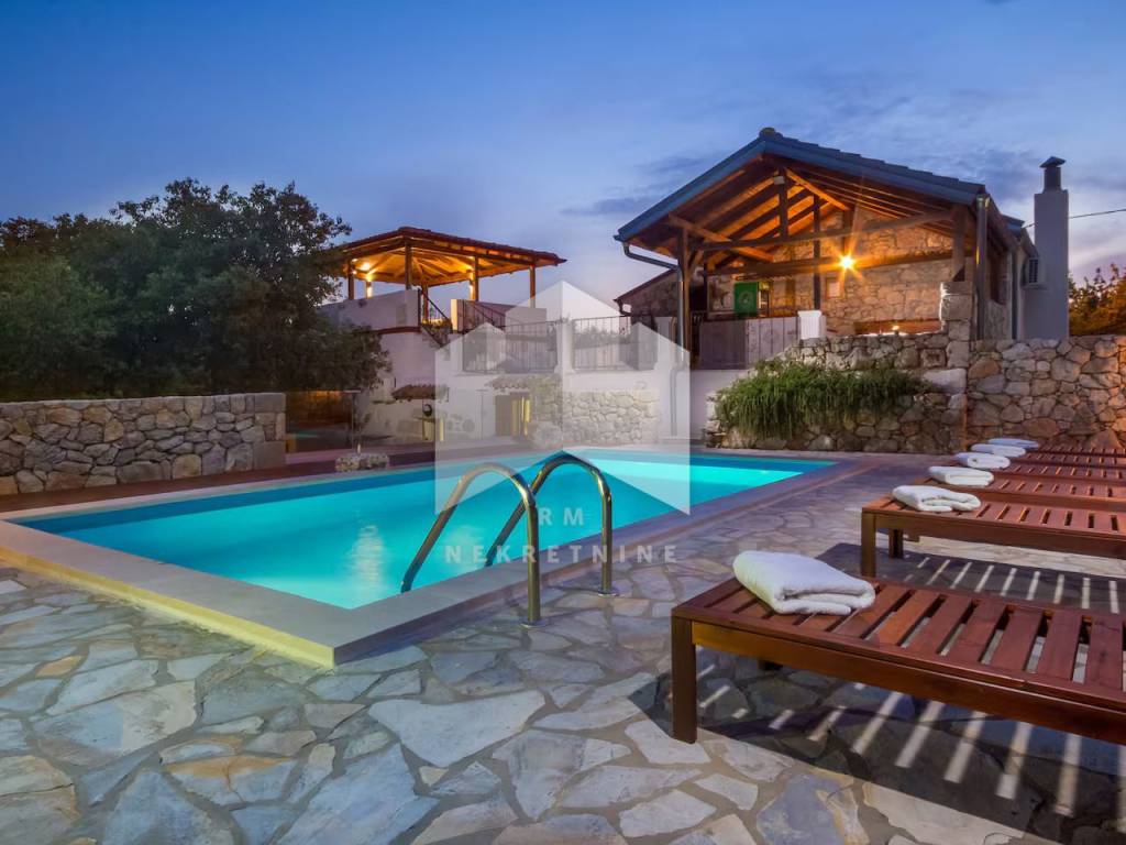 Stara autentična ali kompletno renovirana luksuzna kamena vila,klimatizirana, sastoji se od tri spavaće sobe, četiri kupaonice, fitness, pikado i soba za snooker, stolni tenis,ograđeni vrt,bazen, roštilj, besplatan Wi-Fi, vrt,dječje igralište u zatvorenom i na otvorenom, privatno parkiralište, pogled na more.