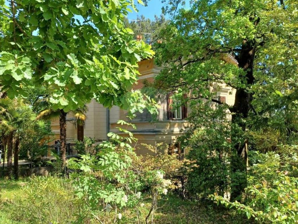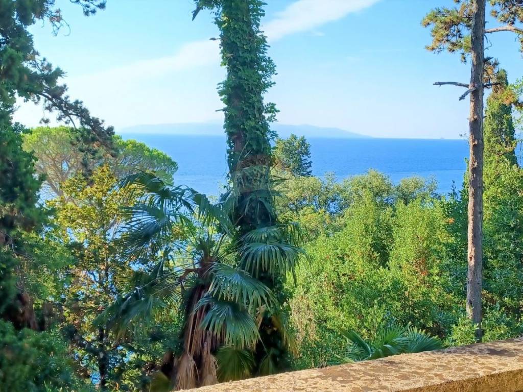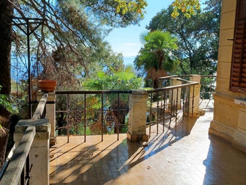 Prodaje se dvoetažni stan, u blizini centra Opatije, u prekrasnoj austrougarskoj vili. Nekretnina se nalazi na izuzetno mirnoj lokaciji i potpuno povučena od pogleda javnosti, okružena sa 2377m2 okućnice, koja je koncipirana kao park i puna starih borova i palmi.