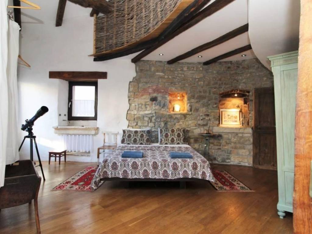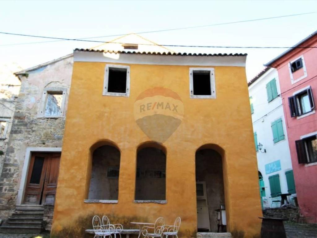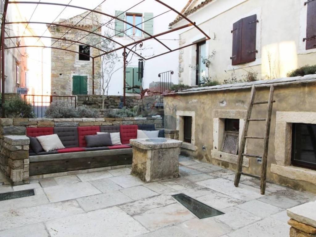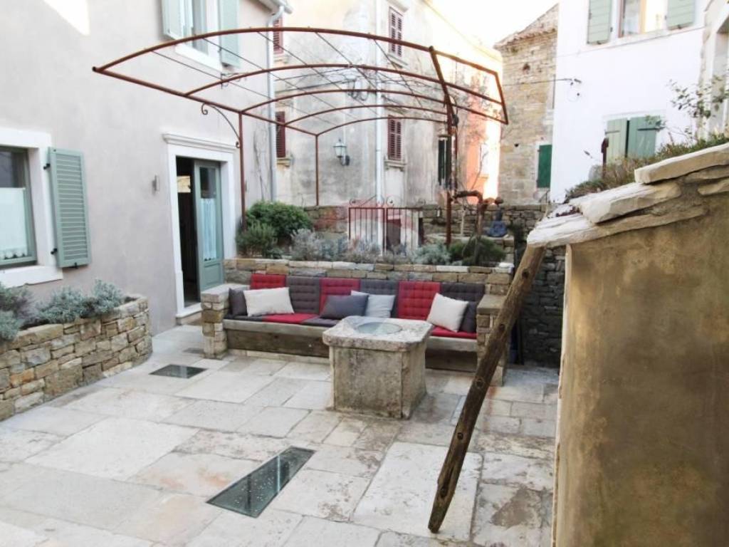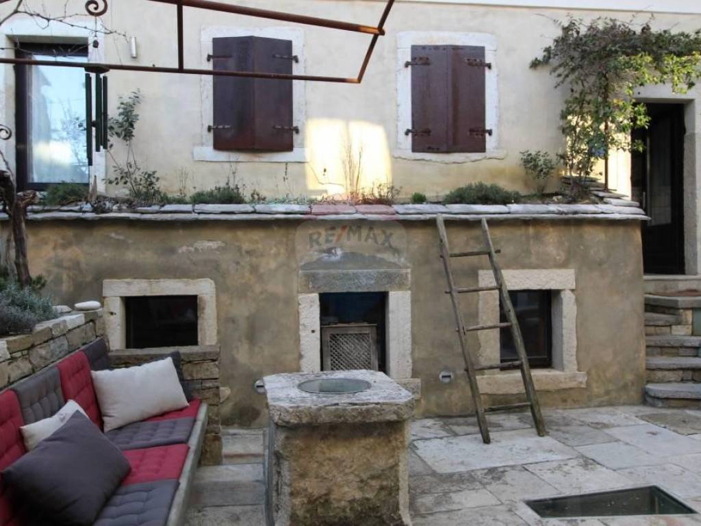 U srcu Istre u malom srednjovjekovnom brdovitom mjestu, između kamenom popločanih ulica i gradskih zidina smještene su ove dvije vrlo zanimljive i posebne kuće. Povezane su zajedničkim kamenim dvorištem, gdje je smješten starinski bunar, kamena klupa, te manji jedinstveni kameni bazen/jacuzzi. Manja kuća ima ulaz i sa glavne ceste, te se cijela prizemna etaža vodi kao poslovni prostor. Sve odiše ugodom uz mnoštvo istarskih detalja, evidentno je da se izuzetno pazilo na svaki detalj, kuća je sređena sa puno pažnje i ukusa. Manja se kuća sastoji od ukopane stare cisterne preuređene u prostoriju za opuštanje i dnevni boravak U prizemlju nalazi se blagovaona i kuhinja, te manja ostava.Drvenim se stepenicama stiže do 1.kata gdje se smjestila stilizirana spavaća soba i kupaonica. Dalje se stepenicama stiže do mansarde gdje je još jedna soba i kupaonica.U kući je podno grijanje izvedeno na svim betonskim podovima. Veća se kuća sastoji od velike prostrane blagovaone sa kaminom, te moderno opremljene kuhinje. koja sigurno zadovoljava svojom funkcionalnošću. Na prvom se katu nalaze dvije spavaće sobe, te kupaonica i toalet.Kuće se prodaju kao jedna cjelina.Izuzetno maštovita i interesantna nekretnina kako za bavljenje turizmom tako i za cjelogodišnji boravak za sve koji se žele povući od gradskog meteža i buke u mirno i idilično mjesto.