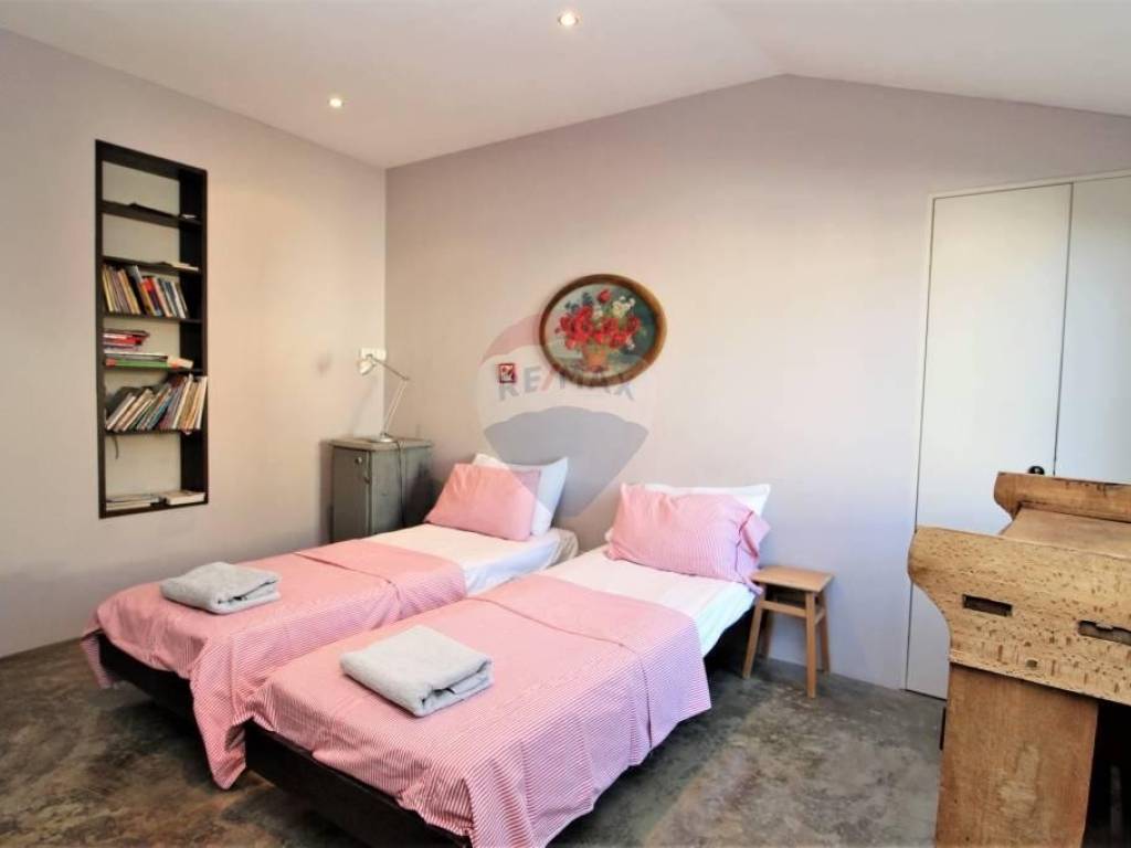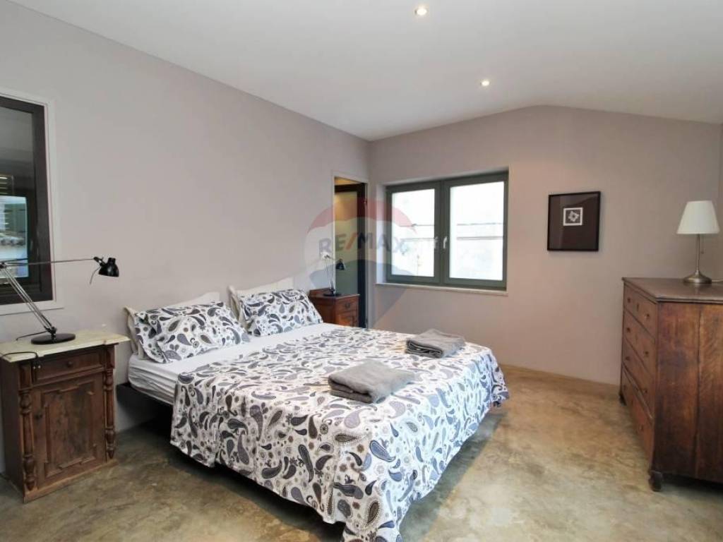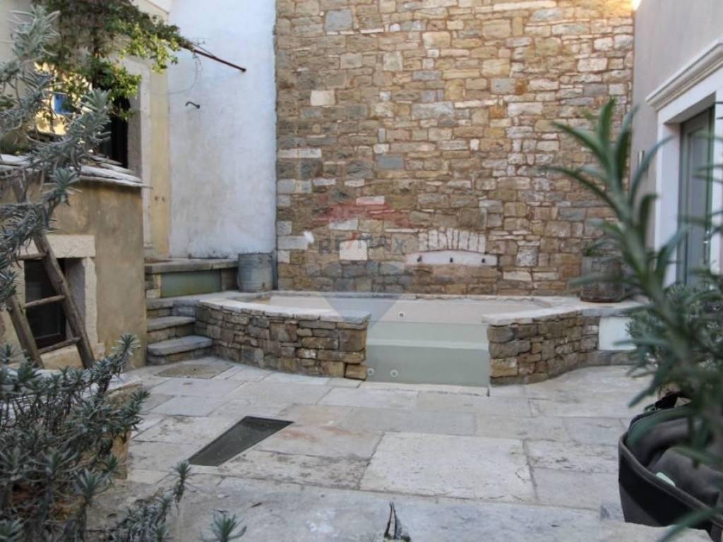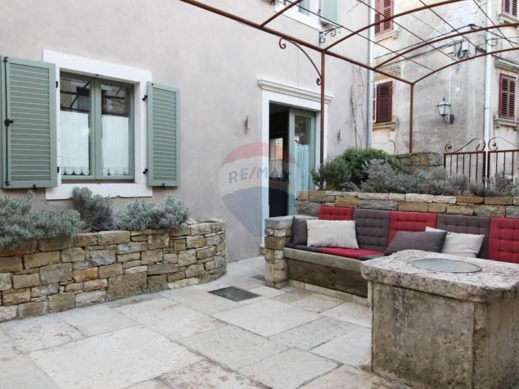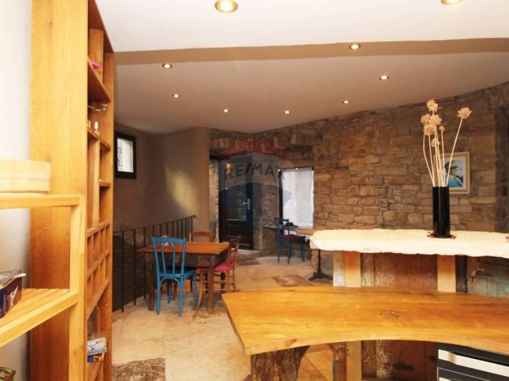 U srcu Istre u malom srednjovjekovnom brdovitom mjestu, između kamenom popločanih ulica i gradskih zidina smještene su ove dvije vrlo zanimljive i posebne kuće. Povezane su zajedničkim kamenim dvorištem, gdje je smješten starinski bunar, kamena klupa, te manji jedinstveni kameni bazen/jacuzzi. Manja kuća ima ulaz i sa glavne ceste, te se cijela prizemna etaža vodi kao poslovni prostor. Sve odiše ugodom uz mnoštvo istarskih detalja, evidentno je da se izuzetno pazilo na svaki detalj, kuća je sređena sa puno pažnje i ukusa. Manja se kuća sastoji od ukopane stare cisterne preuređene u prostoriju za opuštanje i dnevni boravak U prizemlju nalazi se blagovaona i kuhinja, te manja ostava.Drvenim se stepenicama stiže do 1.kata gdje se smjestila stilizirana spavaća soba i kupaonica. Dalje se stepenicama stiže do mansarde gdje je još jedna soba i kupaonica.U kući je podno grijanje izvedeno na svim betonskim podovima. Veća se kuća sastoji od velike prostrane blagovaone sa kaminom, te moderno opremljene kuhinje. koja sigurno zadovoljava svojom funkcionalnošću. Na prvom se katu nalaze dvije spavaće sobe, te kupaonica i toalet.Kuće se prodaju kao jedna cjelina.Izuzetno maštovita i interesantna nekretnina kako za bavljenje turizmom tako i za cjelogodišnji boravak za sve koji se žele povući od gradskog meteža i buke u mirno i idilično mjesto.
