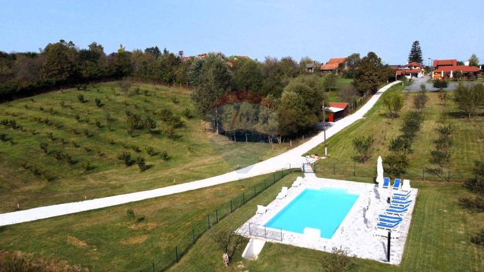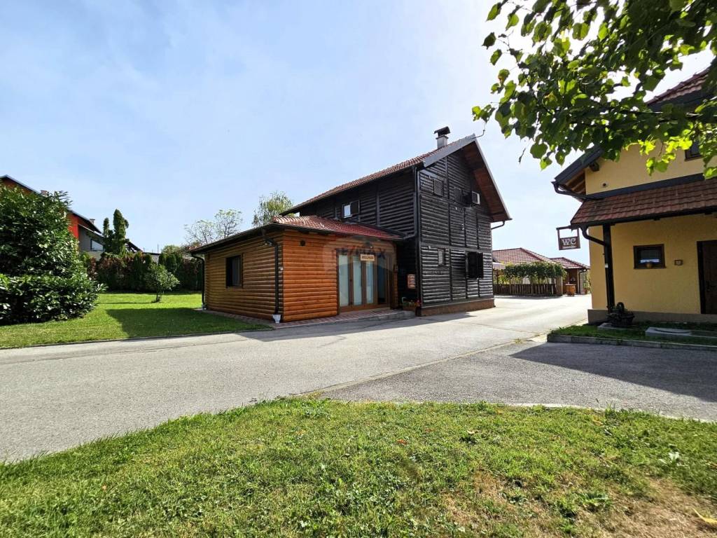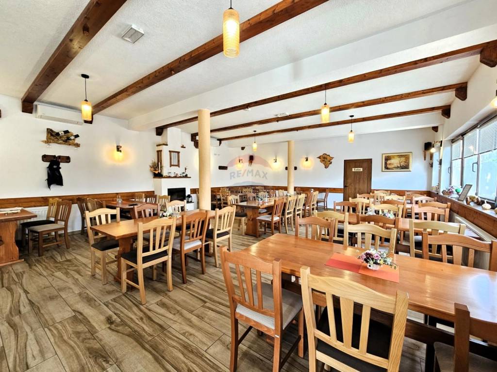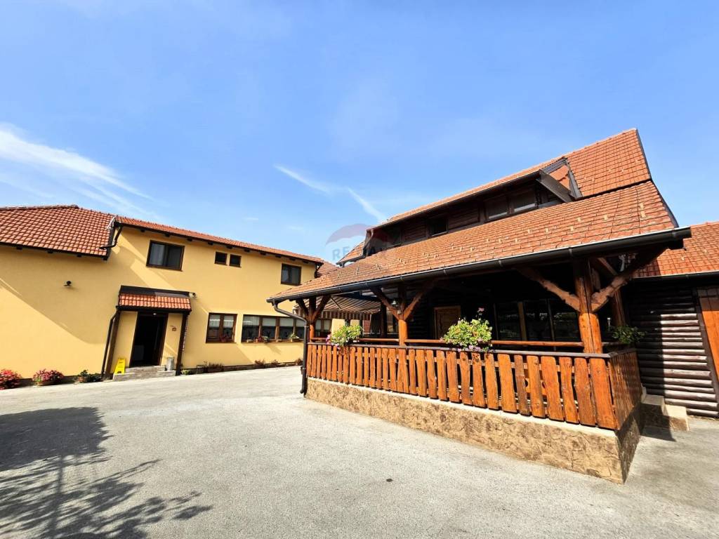 Prednji dio imanja je koncipiran kao ugostiteljski objekt-restoran sa 70 sjedećih mjesta (s opremljenom profesionalnom kuhinjom, šankom, sanitarnim čvorovima, kotlovnicom, garderobom) te natkrivenom terasom sa cca 110 sjedećih mjesta. Terasa ima pogodnost zatvaranja i grijanja te se nastavlja na otvoreni dio (100njak sjedećih mjesta) s pogledom na dječje igralište.