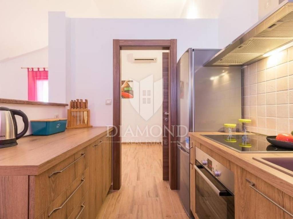 Villa se sastoji od dva odvojena stana, koji se mogu koristiti i kao cjelina. U prizemlju se nalazi kuhinja sa blagovaonom i kuhinjom, sa izlazom na natkrivenu terasu, četiri spavaće sobe i tri kupaone, dok se na prvom katu nalazi također kuhinja sa blagovaonom, dnevni boravak, tri spavaće sobe i dvije kupaone, te natkiveni balkon. U prostoriji za zabavu, nalazi se biljar i stolni nogomet. Ova Villa nudi potpuni komfor u prekrasno uređenom stilu. Prodaje se kompletno namještena i opremljena. Na prostranoj okućnici, nalazi se bazen sa sunčalištem i jacuzzijem, roštilj i stolni tenis.
