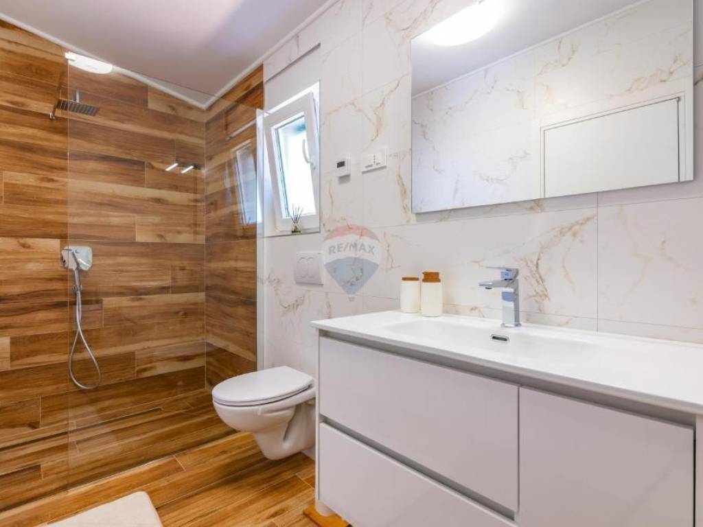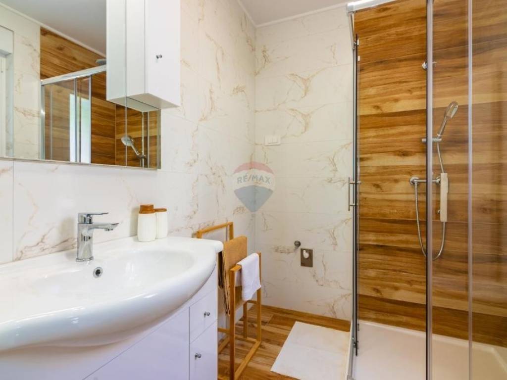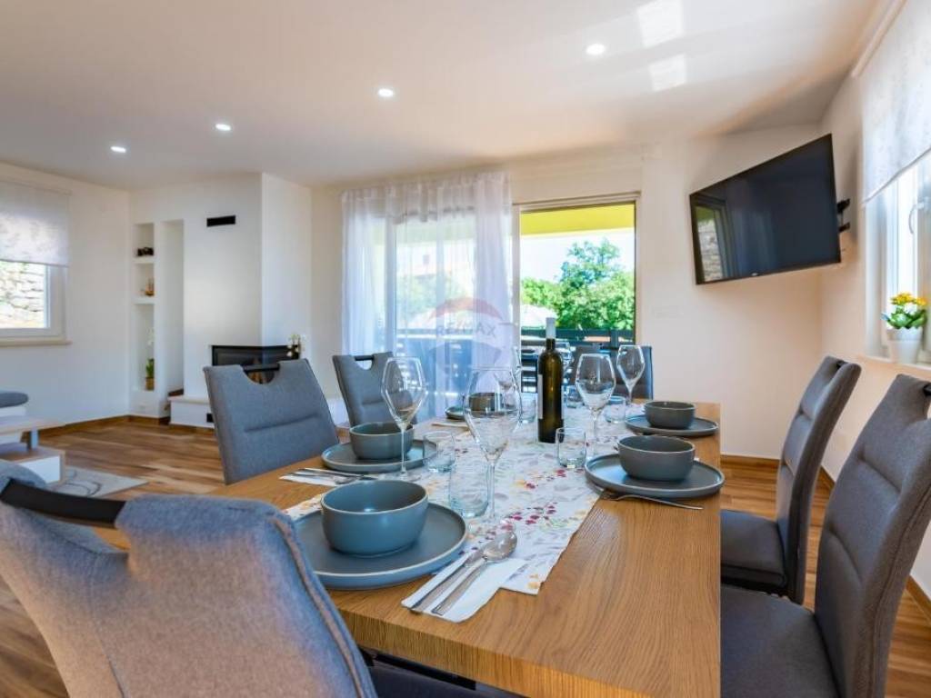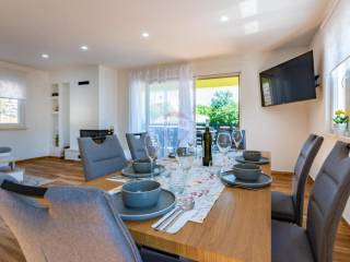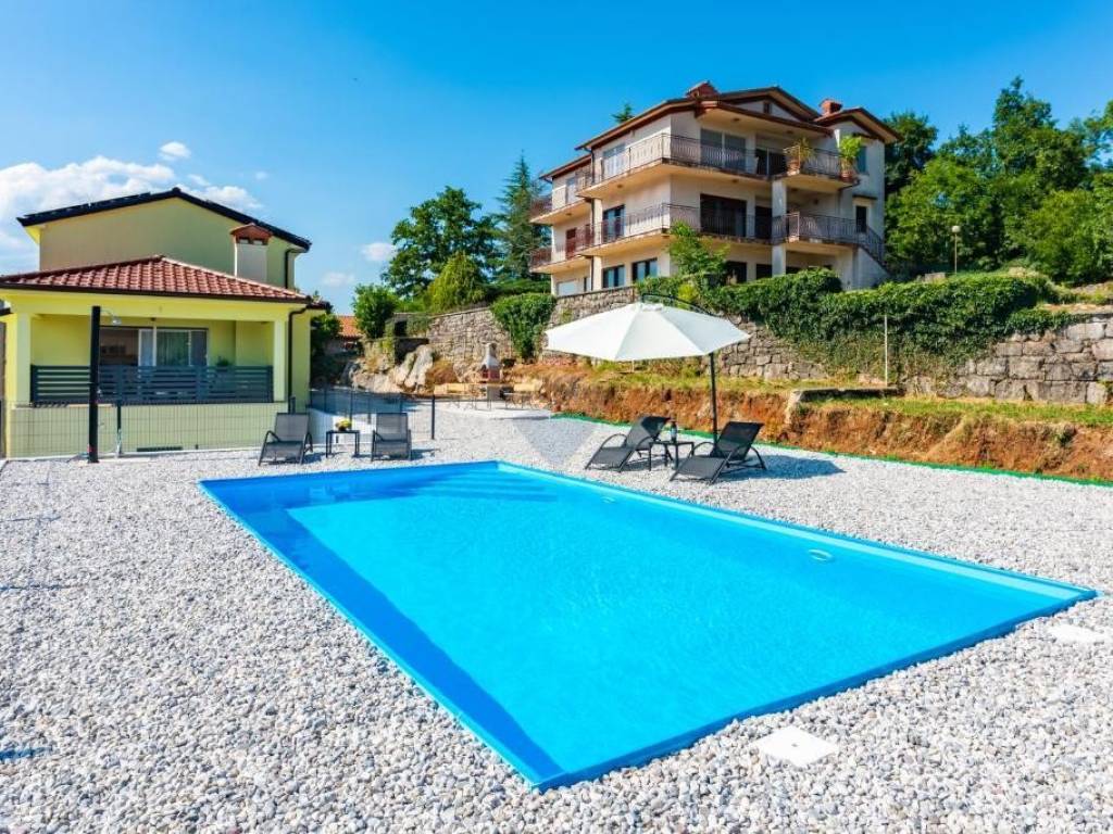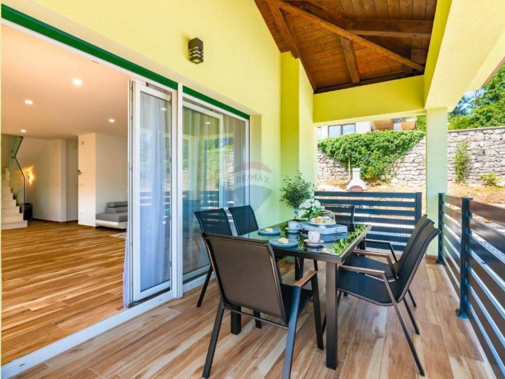 MATULJI - Dugoročno iznajmljujemo obiteljsku kuću, novogradnju s bazenom, parkingom i manjom okućnicom. Smještena je u mirnom okruženju s pogledom na šumu i zelenilo, a sastoji se od prizemlja, kata i sunčališta s bazenom. U prizemlju se nalaze hodnik, kupaonica, te dnevni boravak otvorenog koncepta s kuhinjom i blagovaonicom. Iz ovog dijela izlazi se na lijepu natkrivenu terasu s pogledom na bazen. Na kat vodi unutarnje stubište gdje imamo tri spavaće sobe s kupaonicom. U sklopu okućnice, uz bazenski dio, nalazi se i natkriveni prostor s roštiljem. Kuća je opremljena solarnom elektranom tako da troškova struje gotovo da i nema, a grijanje je podno putem dizalica topline. Odmah dostupno.