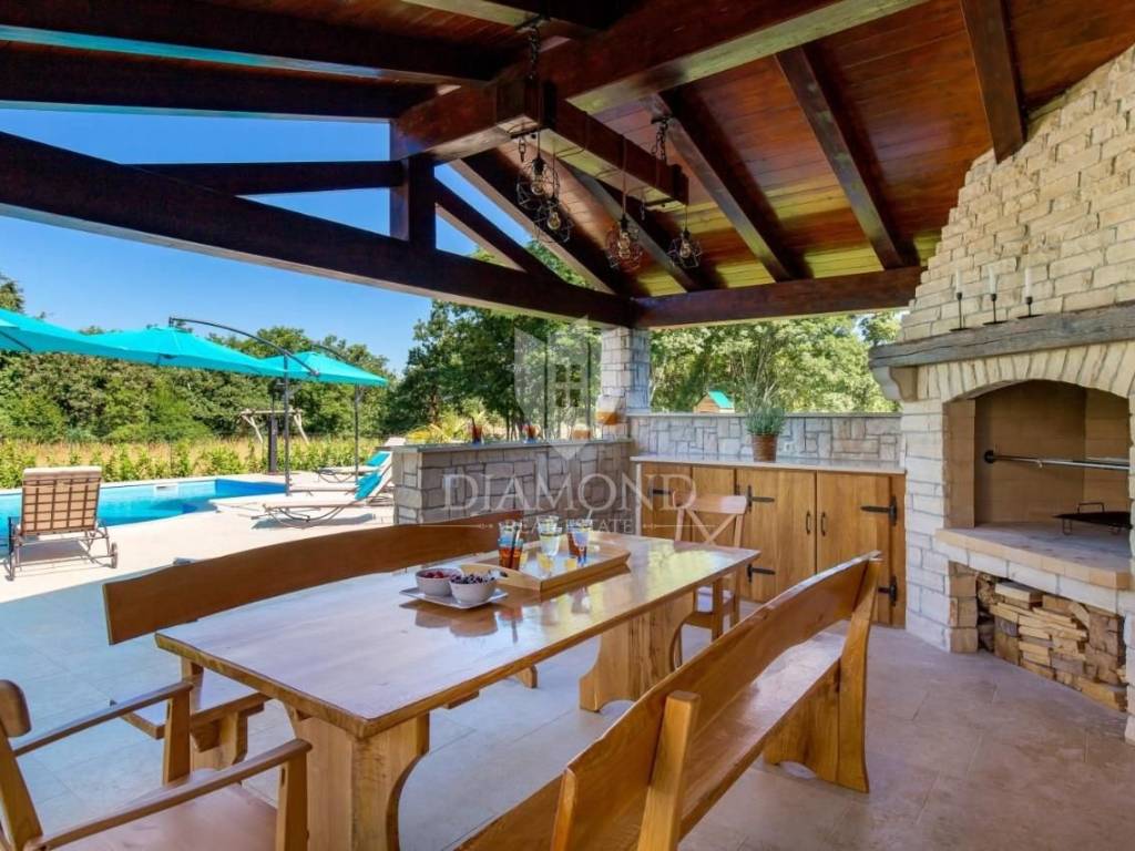 Kvalitetna autohtona nekretnina vrijedna pažnje na vrlo traženoj lokaciji u centralnoj Istri blizu svih potrebnih sadržaja. Trenutno je u funkciji turističkog iznajmljivanja gdje ostvaruje odlične prihode vlasniku a iznajmljuje se tijekom cijele godine. Novi vlasnik ima priliku nastaviti sa turističkim iznajmljivanjem ili pak zadržati ovu prekrasnu Villu samo za sebe i steći dio prekrasnog istarskog raja.