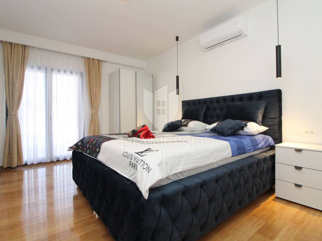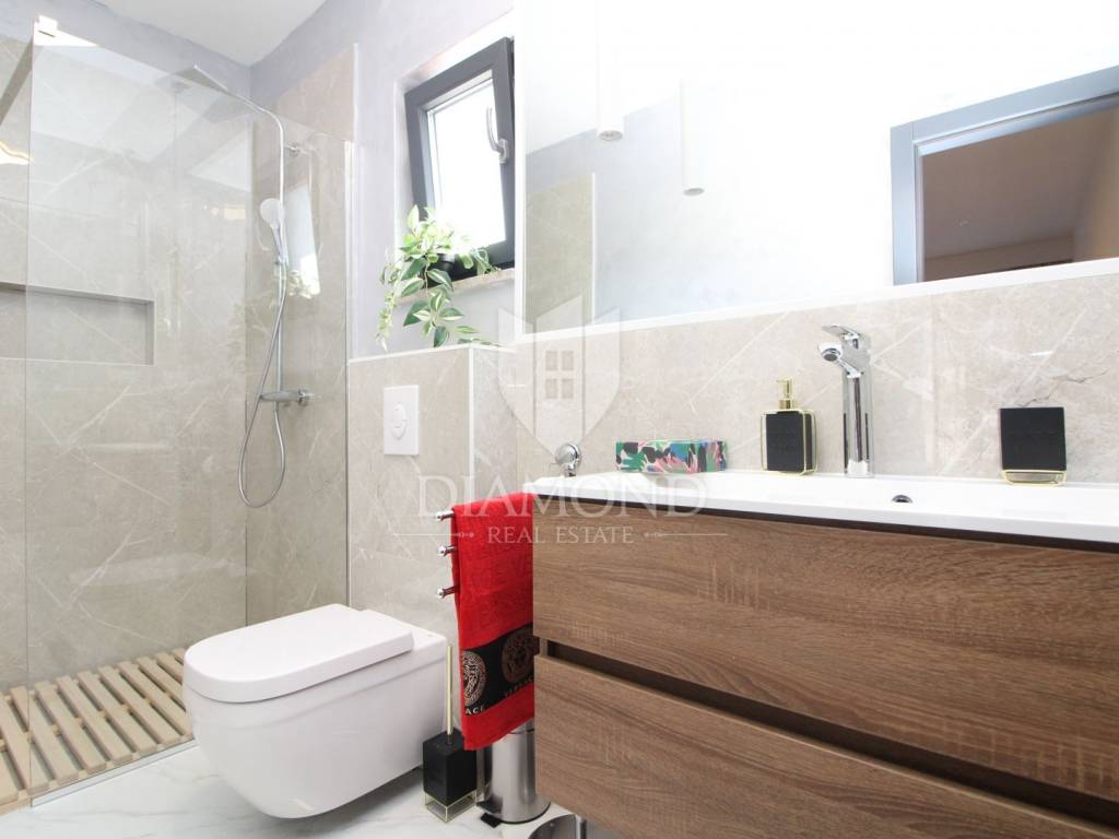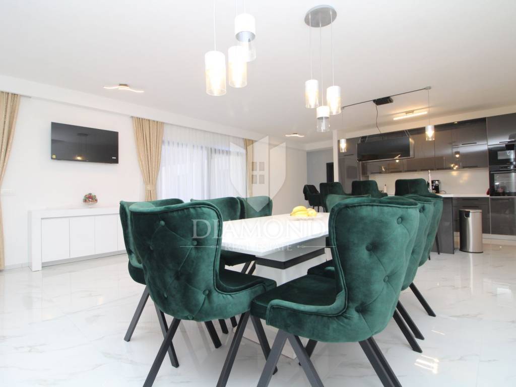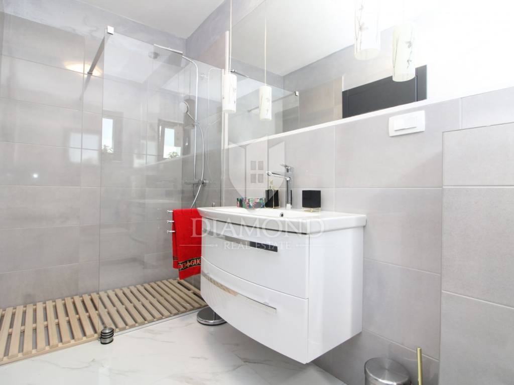 Prostrana okućnica osigurava komociju - dovoljno zelenih površina, parking za dva automobila a centar pozornosti svakako zauzima grijani bazen sa slanom vodom veličine 32 m2.