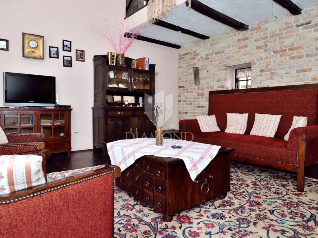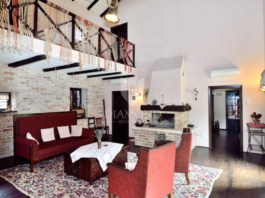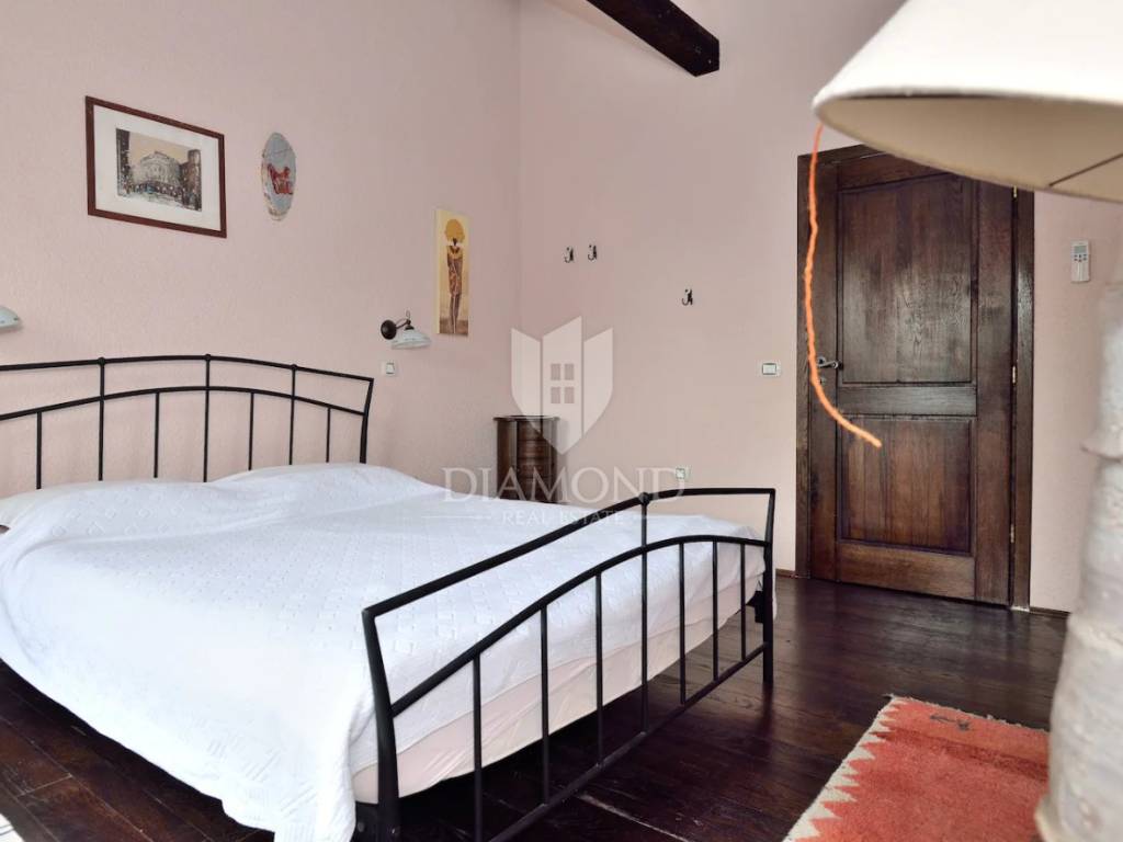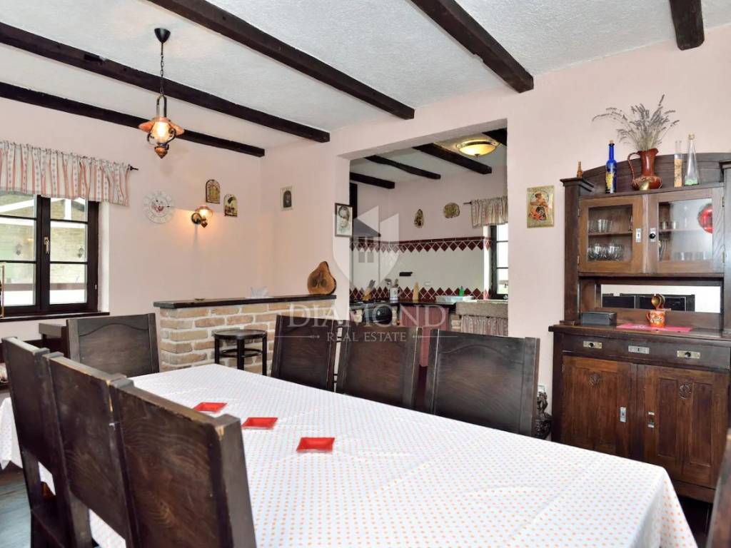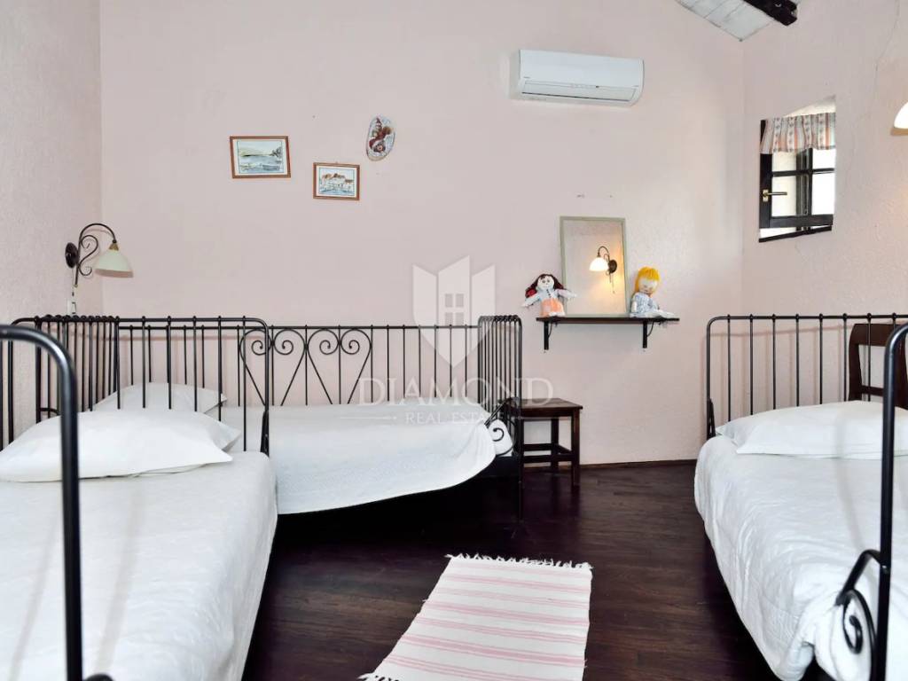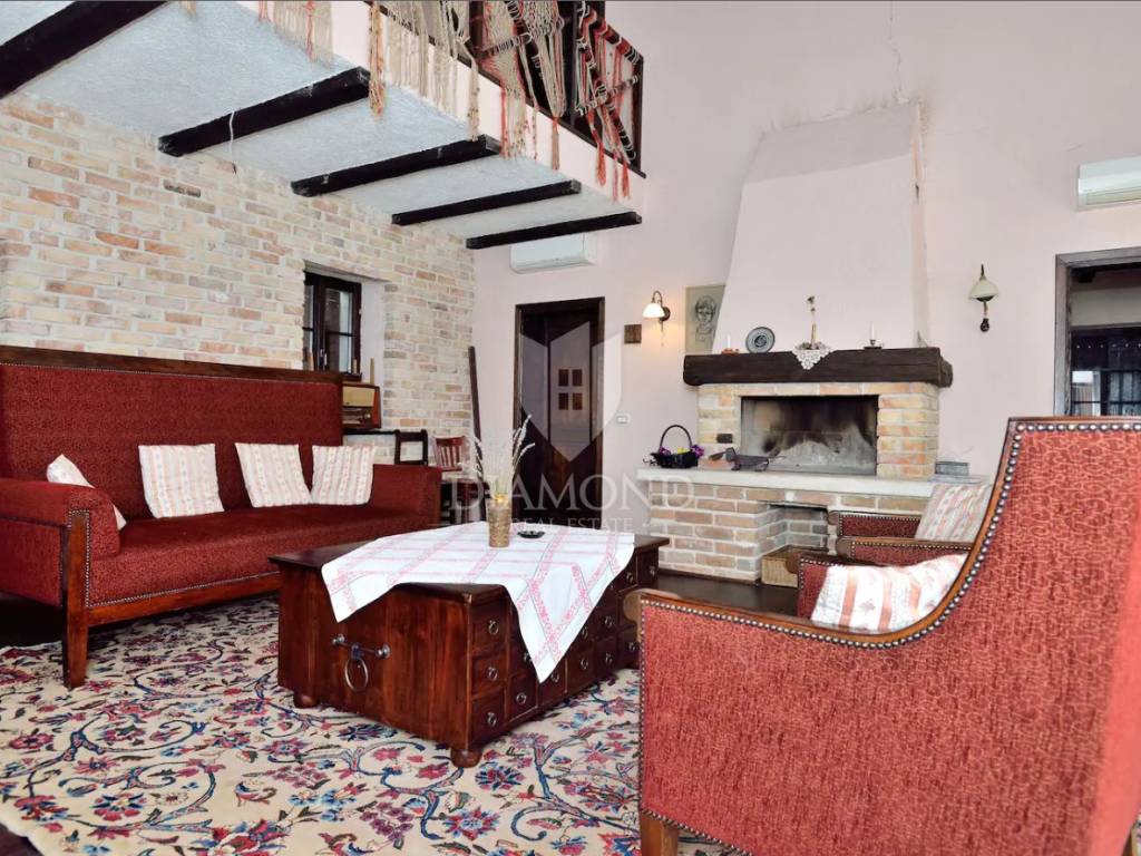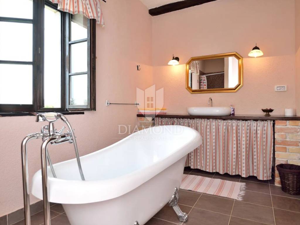 Ova prekrasna kuća za odmor tradicionalnog dizajna koncipirana je kao katnica, ukupne površine 294 m2 a smještena je na prostranoj parceli veličine 1000 m2. Kuća je građena kvalitetnim materijalima i opremljena u tradicionalnom stilu koji nudi funkcionalnost ali i udobnost. Prevladavaju prirodni materijali poput kamena i drveta čiji su detalji prožeti cijelim interijerom. Na katu se nalaze ukupno četiri spavaće sobe od kojih je jedna master soba sa en-suite kupaonicom i izlazom na balkon s kojeg se pruža prekrasan pogled na okolnu netaknutu prirodu, dok ostale spavaće sobe dijele jednu zajedničku kupaonicu. Prizemlje obuhvaća komforan dnevni boravak, potpuno opremljenu kuhinju i blagovaonicu sa izlazom na natkrivenu terasu koja nadgleda bazen i uređenu okućnicu. Tu se nalazi i wellness zona sa saunom i mini teretanom. Pitanje grijanja i hlađenja riješeno je postavljenim klima uređajima u svim prostorijama, klasičnim istarskim kaminom u dnevnom prostoru te podno grijanje u svim kupaonicama. Kuća ima i postavljene solarne panele za proizvodnju vlastite električne energije.