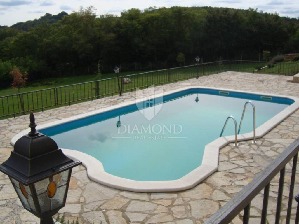 Okućnica je lijepo uređena i održavana a ukupne je kvadrature 887 m2. U središtu okućnice smješten je bazen veličine 40 m2 sa uređenim sunčalištem sa kojega se pruža lijepi pogled na okolnu prirodu i zelenilo. Lokacija nekretnine nudi mir i tišinu u netaknutoj prirodi te savršen bijeg od užurbanog načina života u zelenu oazu prekrasne Istre. Centralna lokacija nudi 30 minuta vožnje do svih većih gradova u Istri, te istu udaljenost do istočne i zapadne obale Istre.