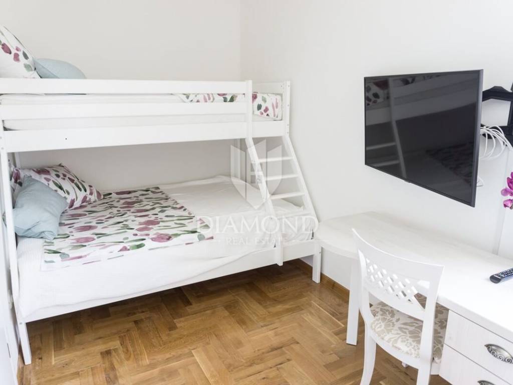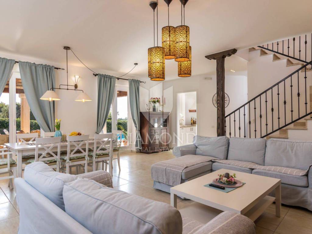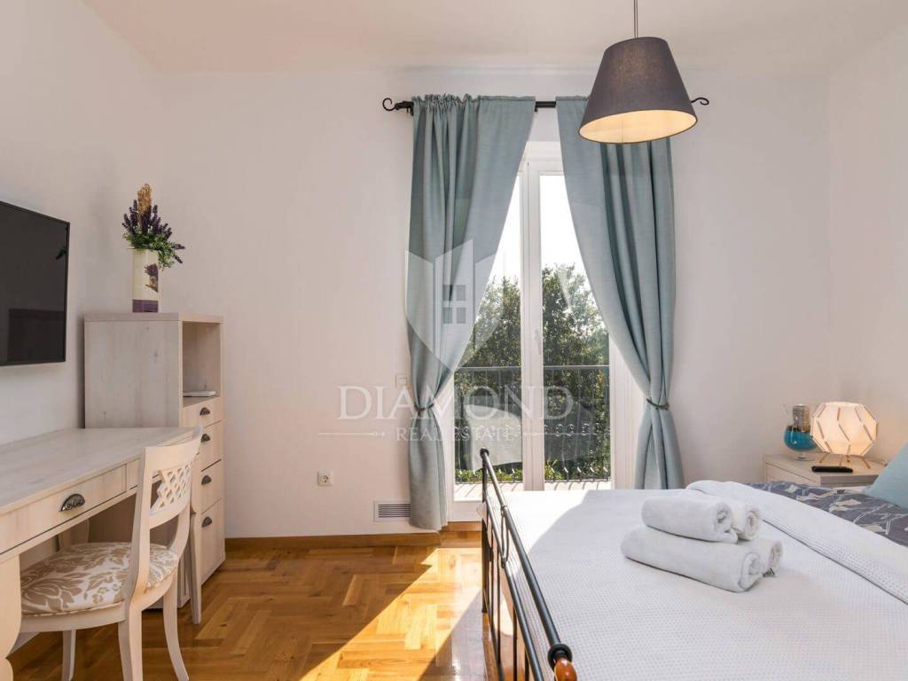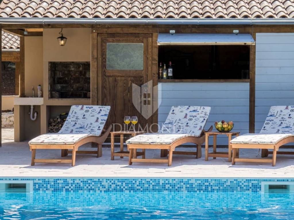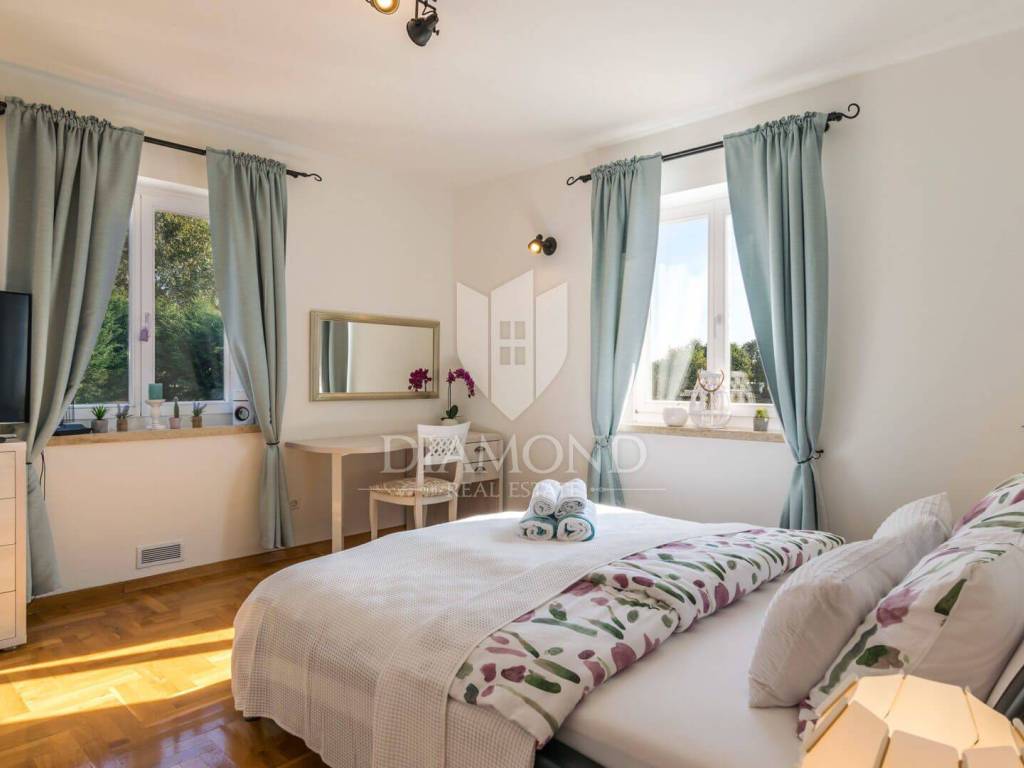 Ova prekrasna Villa sastoji se od prizemlja i kata, a ukupne je kvadrature 180 m2. Prizemlje obuhvaća komforan dnevni boravak, blagovaonicu i kuhinju. Tu se nalazi i jedna spavaća soba, kupaonica te praonica. Na katu su smještene još tri spavaće sobe, od kojih je jedna master soba sa vlastitom kupaonicom i balkonom sa kojeg se prekrasni pogled pruža preko maslinika i do mora. Preostale dvije spavaće sobe dijele jednu zajedničku kupaonicu.