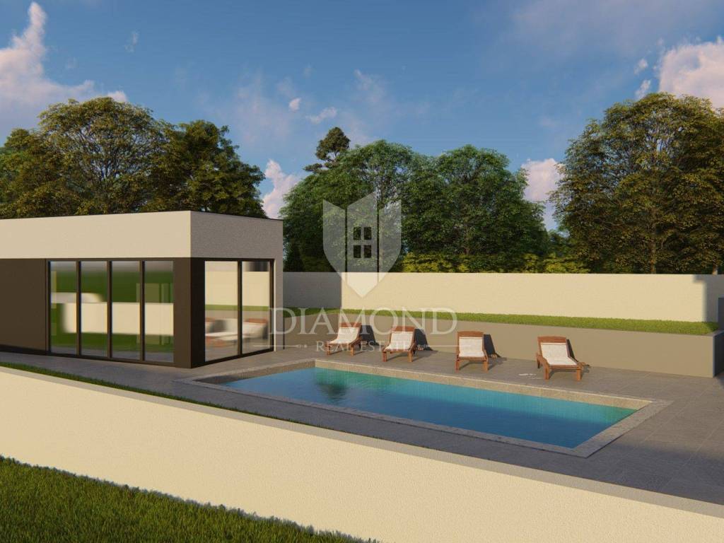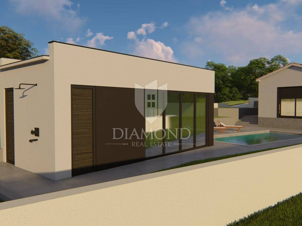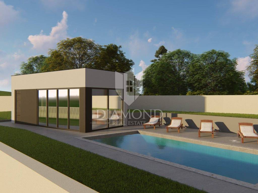 Okućnica iznosi 891 m2 i u potpunosti je ograđena i uređena. Osiguran je parking za 2-3 automobila, lijepe zelene površine a u centru okućnice smješten je bazen te pomoćni objekt veličine 19.2 m2 u kojem je predviđena društvena prostorija te toalet.
