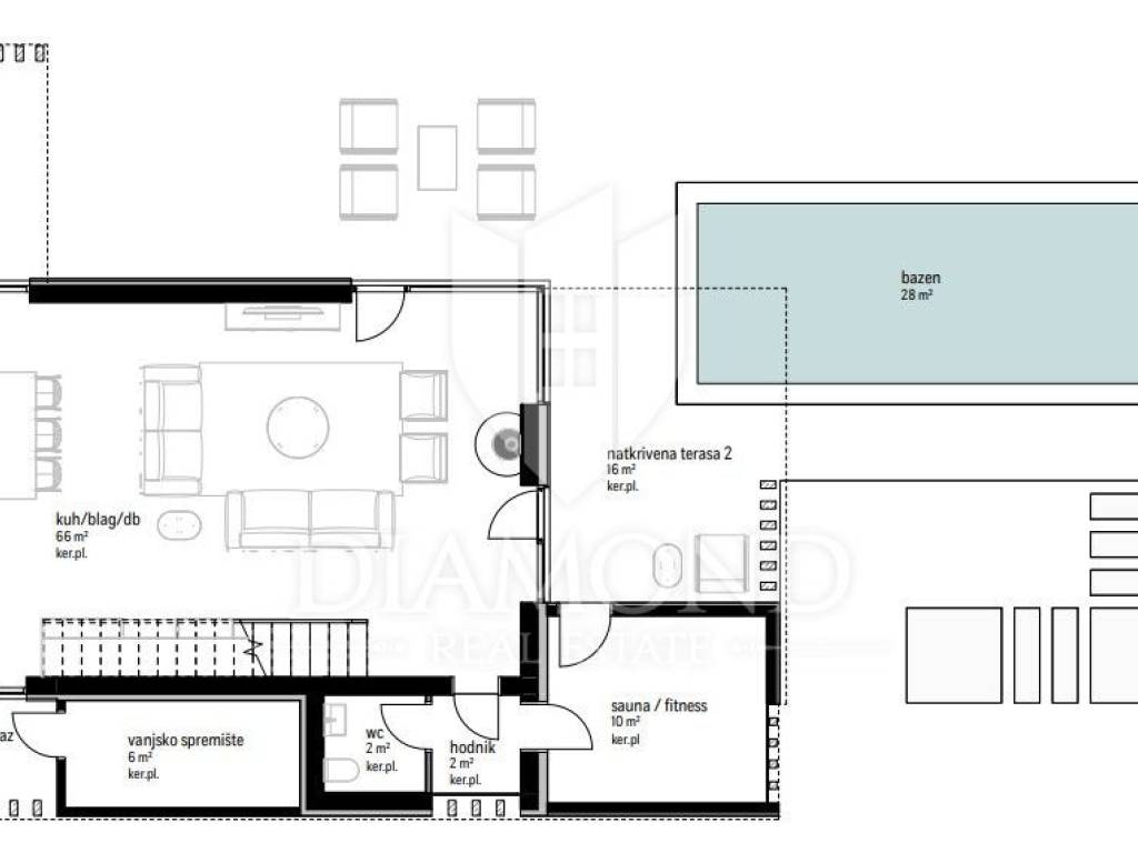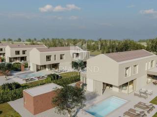 Ukoliko tražite savršeno mjesto za odmor, ova prekrasna villa sa bazenom u novogradnji u okolici Labina je idealna za vas. Villa ukupne površine 283 kvadratnih metara stambenog prostora nalazi se na 2000 kvadratnih metara okućnice. Villa se sastoji od prizemlja i kata. Prizemlje ove prekrasne ville sastoji se od prostranog open-space prostora koji uključuje kuhinju, blagovaonicu i dnevni boravak. U prizemlju se također nalazi prostorija za saunu sa koje prelazimo na natkrivenu terasu koja je opremljena ljetnom kuhinjom i grijanim bazenom ukupne kvadrature 48m2. Na prvom katu ove ville smjestile su nam se 4 spavaće sobe, svaka sa vlastitom kupaonicom. Pitanje grijanja i hlađenja riješeno je postavljenim klima uređajima, fan coil sistemom podnog grijanja te su postavljene solarne elektrane za smanjenu potrošnju energije. Villa se nalazi u mirnoj ulici a opet blizu svih potrebnih sadržaja potrebnih za život. Od grada Labina villa je udaljena deset minuta dok do prve plaže svega petnaestak minuta vožnje.