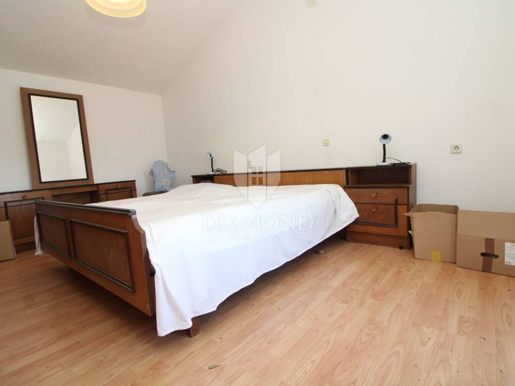 Nekretnina je smještena na odličnoj lokaciji, zadnja u nizu i s otvorenim prekrasnim pogledom na okolnu prirodu i brežuljke. Koncipirana je kao katnica ukupne površine 110 m2 a sastoji se od dvije spavaće sobe, kuhinje s blagovaonicom, dnevnog boravka, kupaonice i prostrane terase. Prostrana okućnica iznosi 1178 m2 a na njoj je smješten i pomoćni objekt veličine 12 m2 te gospodarski objekt od 175 m2. Pozicija nekretnine i veličina okućnice osiguravaju odličnu privatnost i mir svojim domaćinima a prostrana okućnica nudi brojne mogućnosti budući da se u cijelosti nalazi unutar građevinske zone.