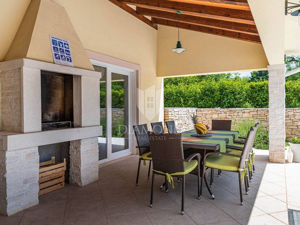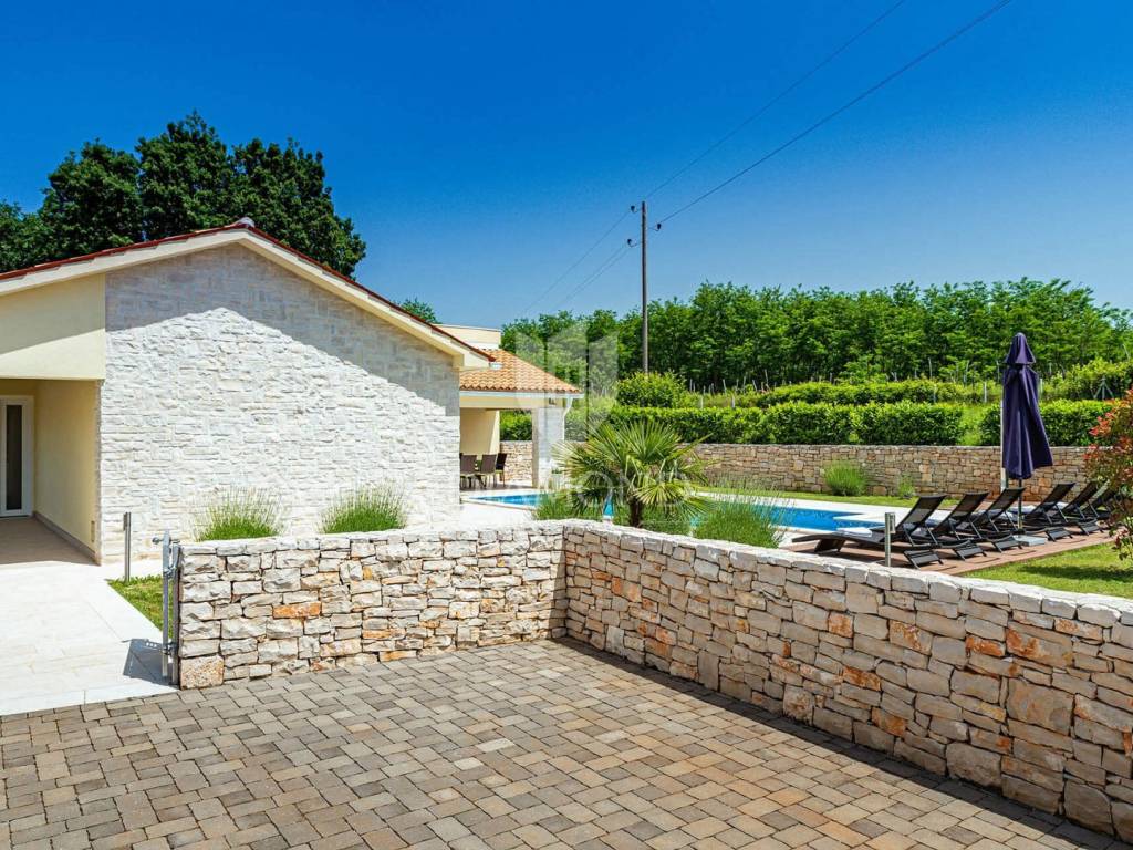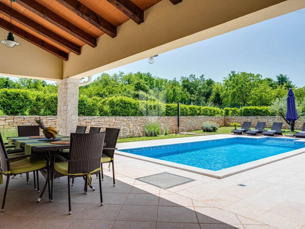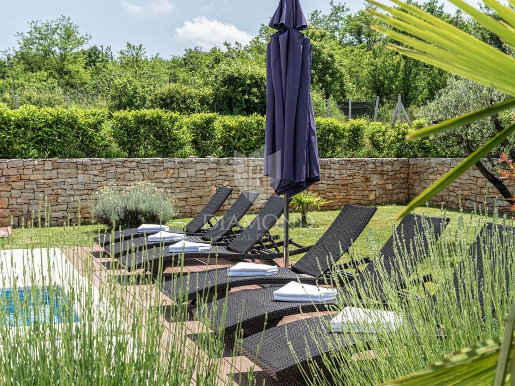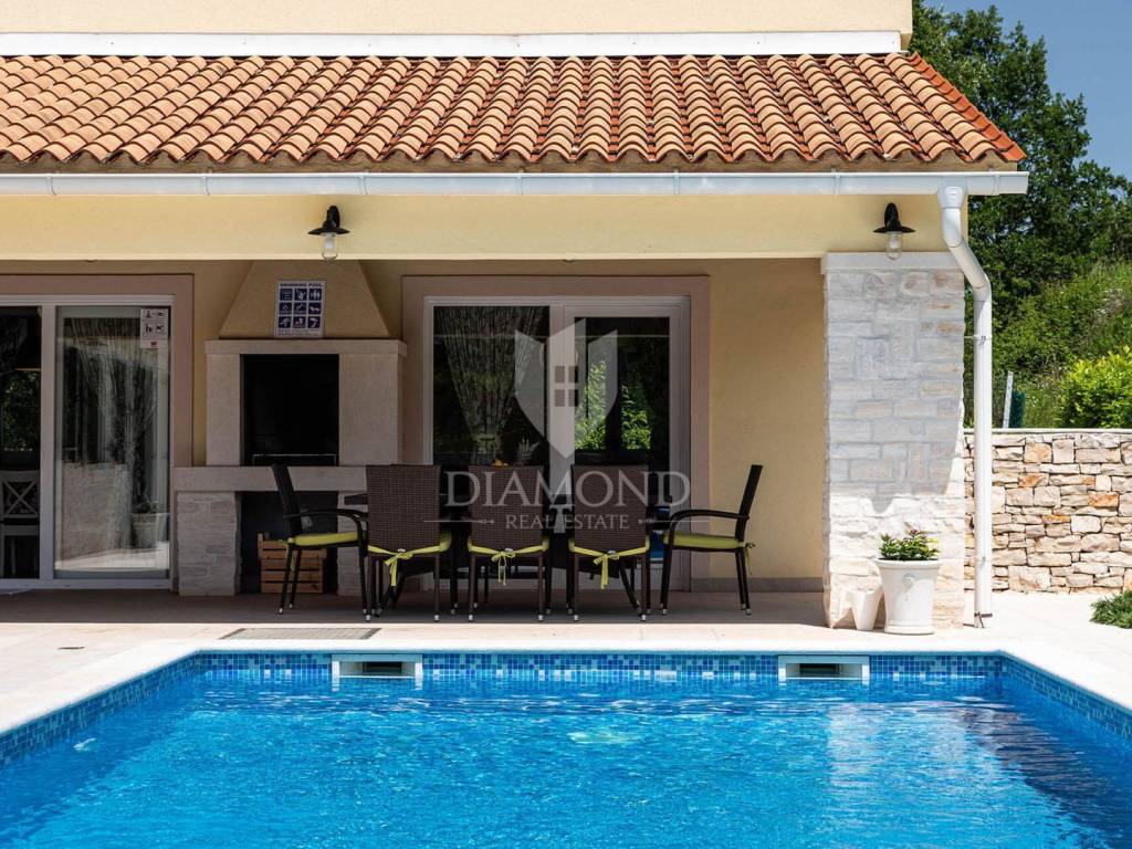 Na privatnoj okućnici ukupne površine 1020 m2 smjestio se prostrani grijani bazen ukupne površine 32 m2. Okućnicu također krasi roštilj i natkriveni dio terase gdje se nalazi blagovaonski stol za ugodna druženja u toplim ljetnim mjesecima. Uz prekrasni grijani bazen i uređeno sunčalište nalazi se i lounge prostor sa lijepim pogledom na uređenu okućnicu i okolnu prirodu.