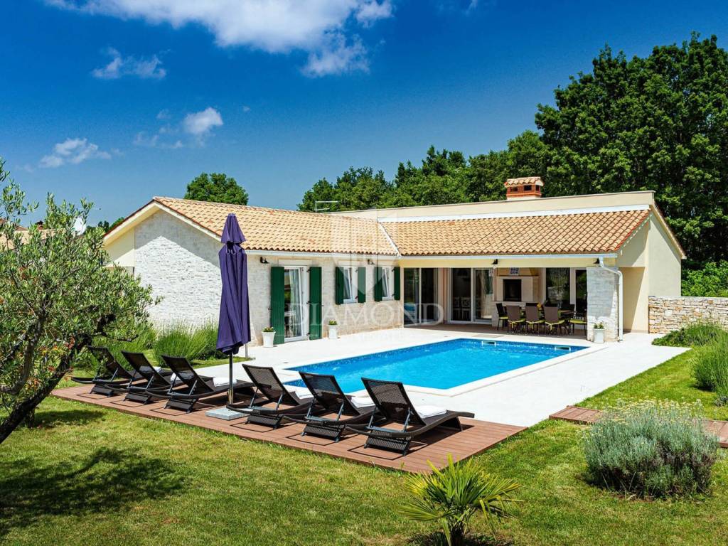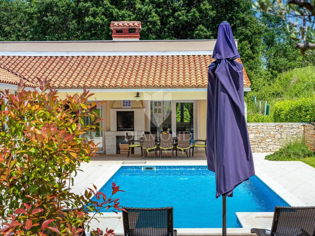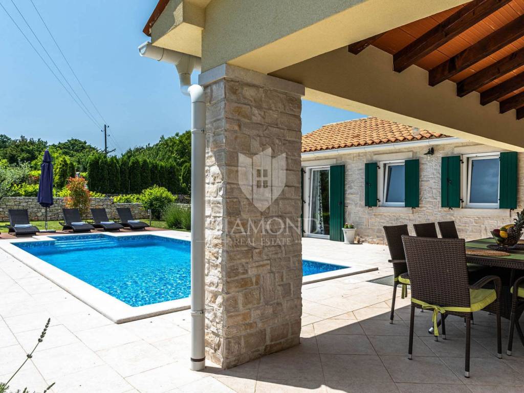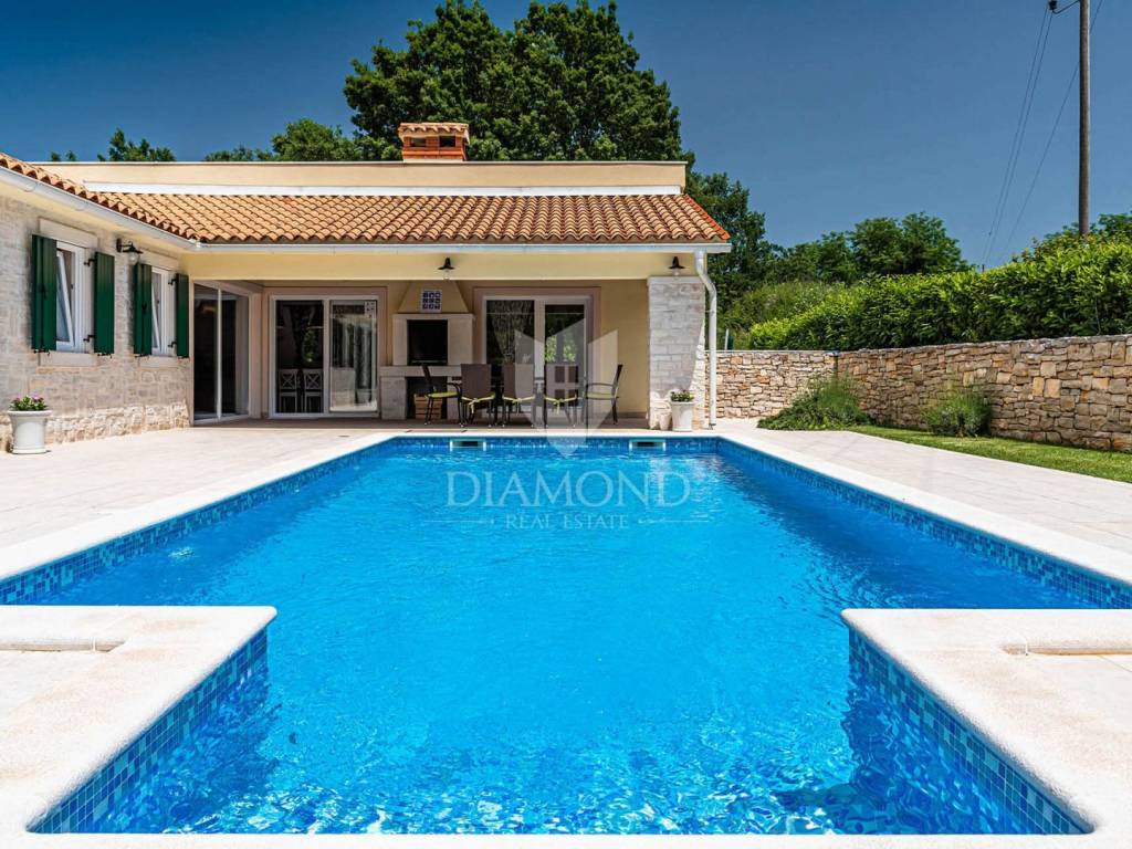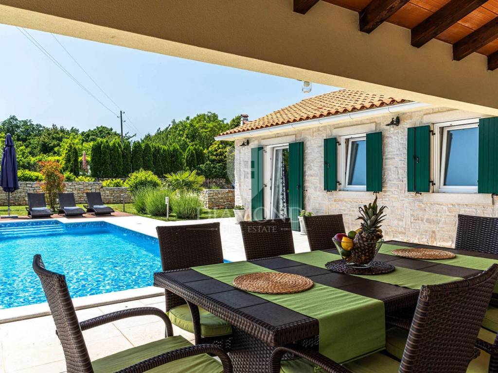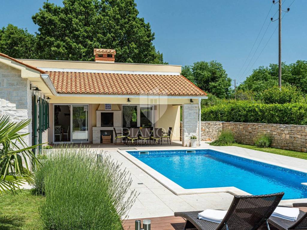 Na privatnoj okućnici ukupne površine 1020 m2 smjestio se prostrani grijani bazen ukupne površine 32 m2. Okućnicu također krasi roštilj i natkriveni dio terase gdje se nalazi blagovaonski stol za ugodna druženja u toplim ljetnim mjesecima. Uz prekrasni grijani bazen i uređeno sunčalište nalazi se i lounge prostor sa lijepim pogledom na uređenu okućnicu i okolnu prirodu.