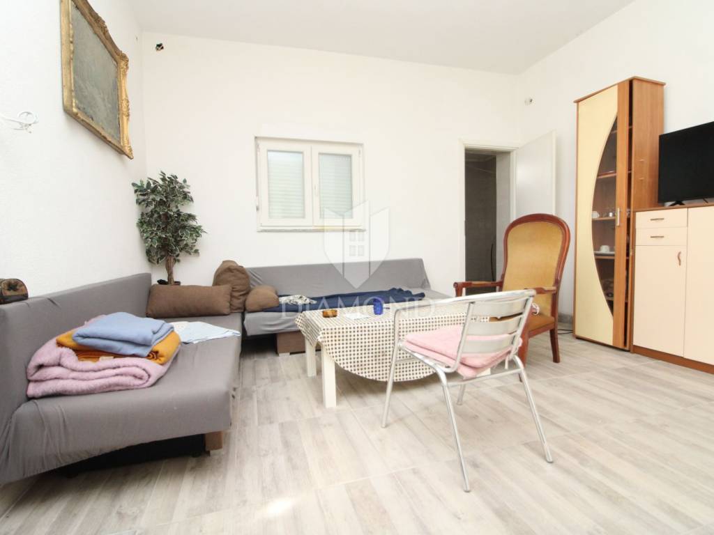 Ova nekretnina započete renovacije, pruža sjajnu mogućnost onima koji žele prostor koji mogu prilagoditi prema vlastitim potrebama i viziji svog doma. S izvrsnom lokacijom i velikim potencijalom, ova nekretnina nudi mogućnost stvaranja savršenog mediteranskog doma. Idealna je za veliku obitelj no možemo ju zamisliti i kao apartmansku kuću za iznajmljivanje budući da je lokacija vrlo pogodna za turizam. Prva plaža nalazi se na svega 1.5 kilometra kao i sadržaji poput restorana, dućana i kafića.