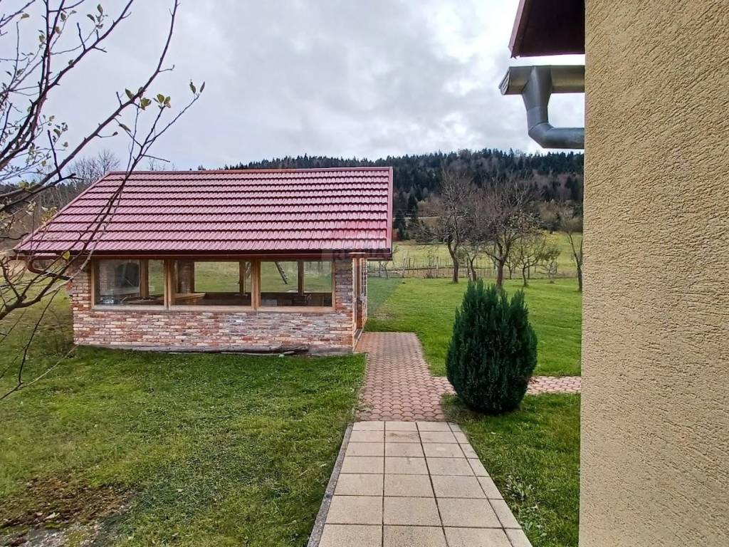 Ono što je svakako velika prednost ove kuće i rijetkost za naći je velika i prostrana okućnica ukupne površine 2204 m2 kojoj još pripada dodatnih 22.204 m2 livade i šume koja se nadovezuje na samu okućnicu. Sve je uredno i održavano, tako da nudi uistinu puno opcija i mogućnosti za razne ideje. Bez obzira što se kuća nalazi u naseljenom dijelu mjesta, zbog prostranstva zemlje koja ju okružuje nudi veliku privatnost i intimu, te direktan spoj sa prirodnim ljepotama okolne šume i livada.