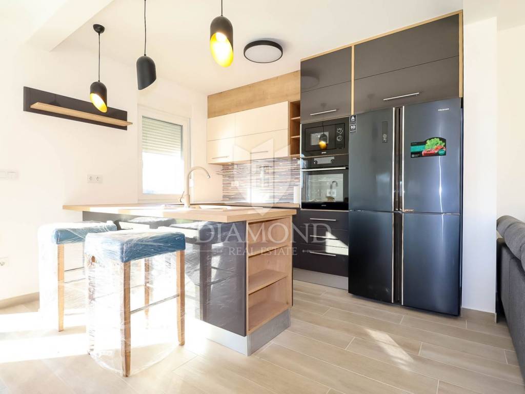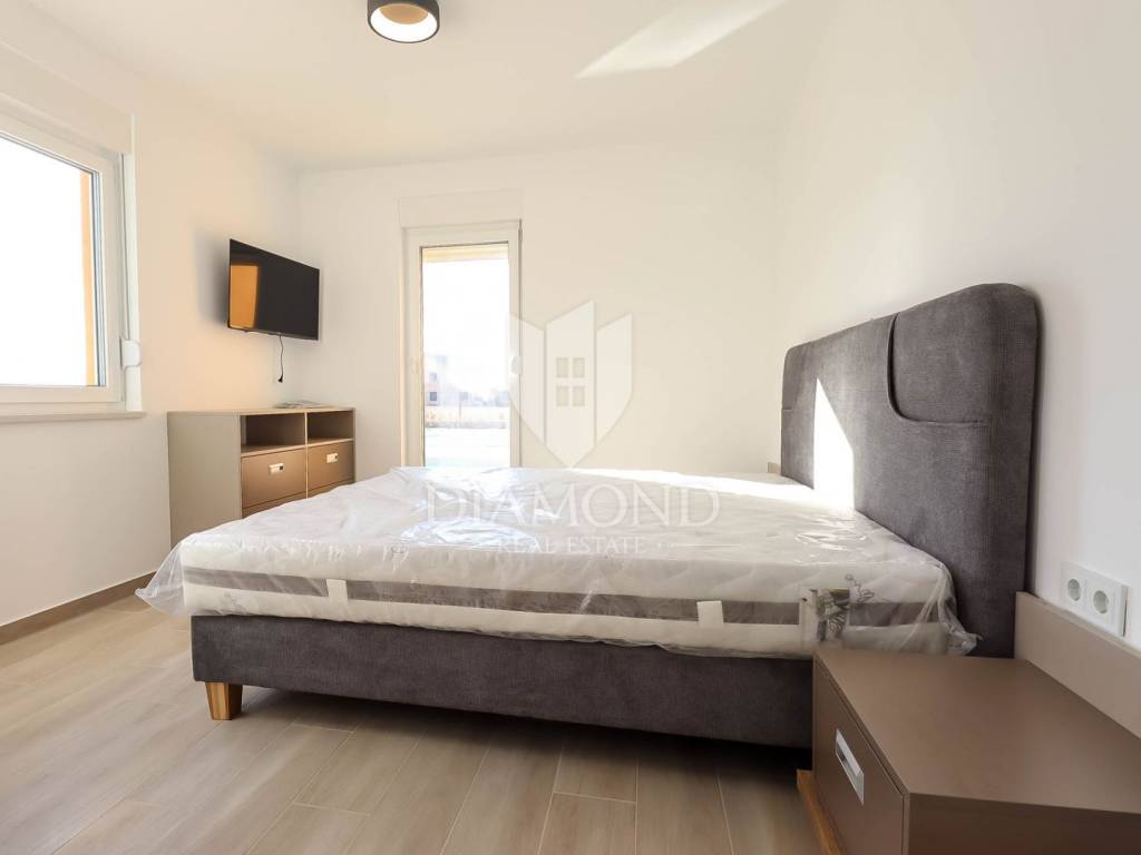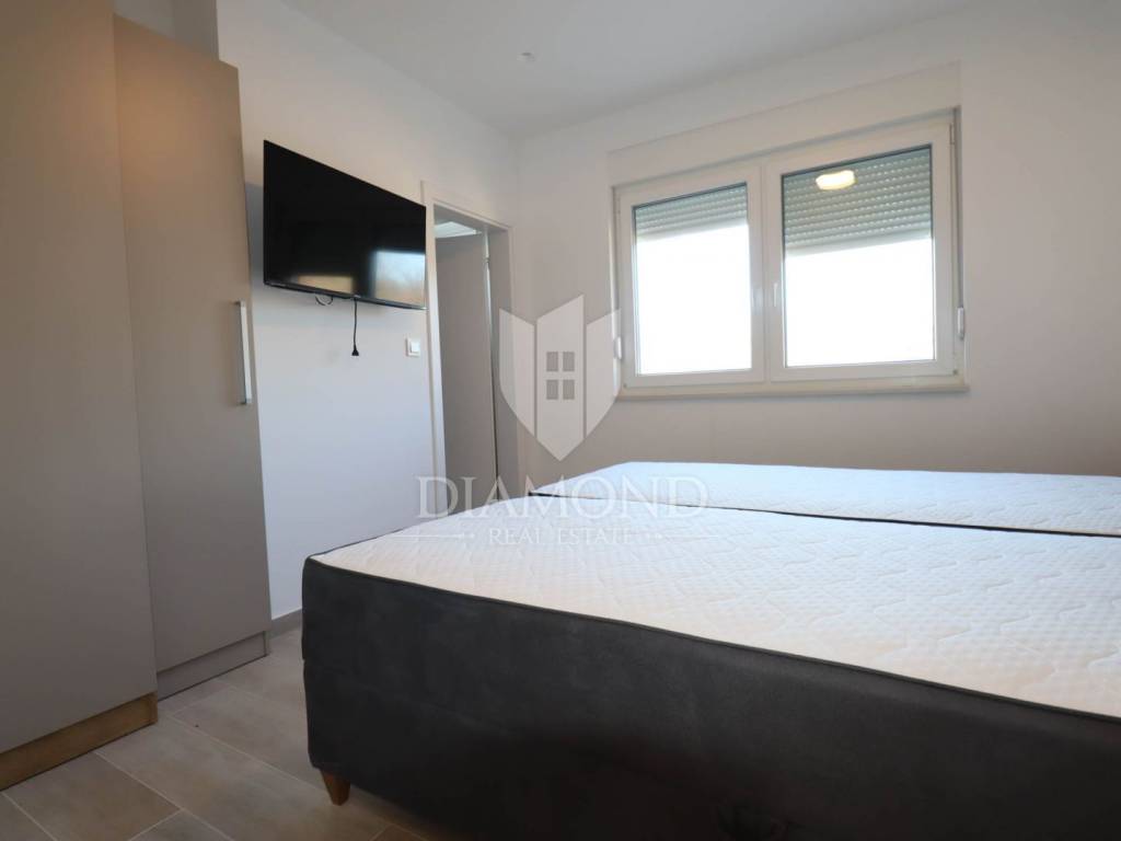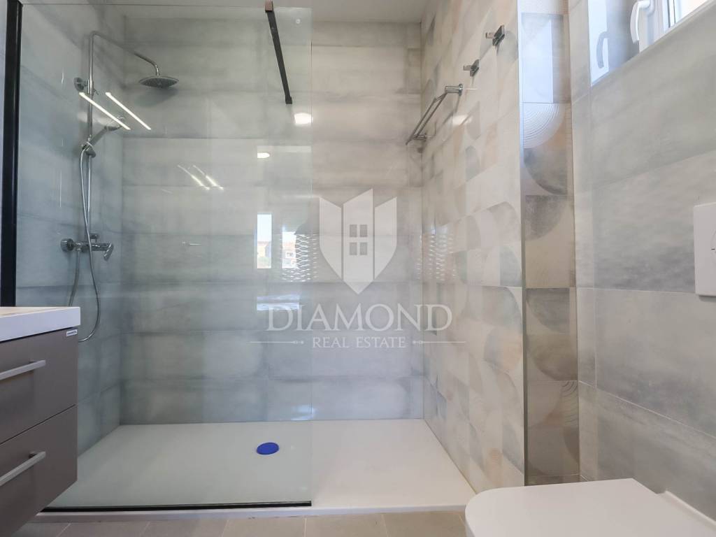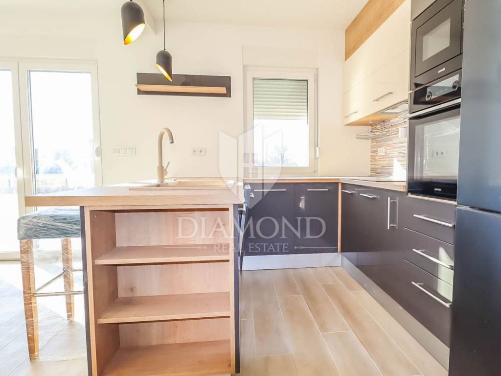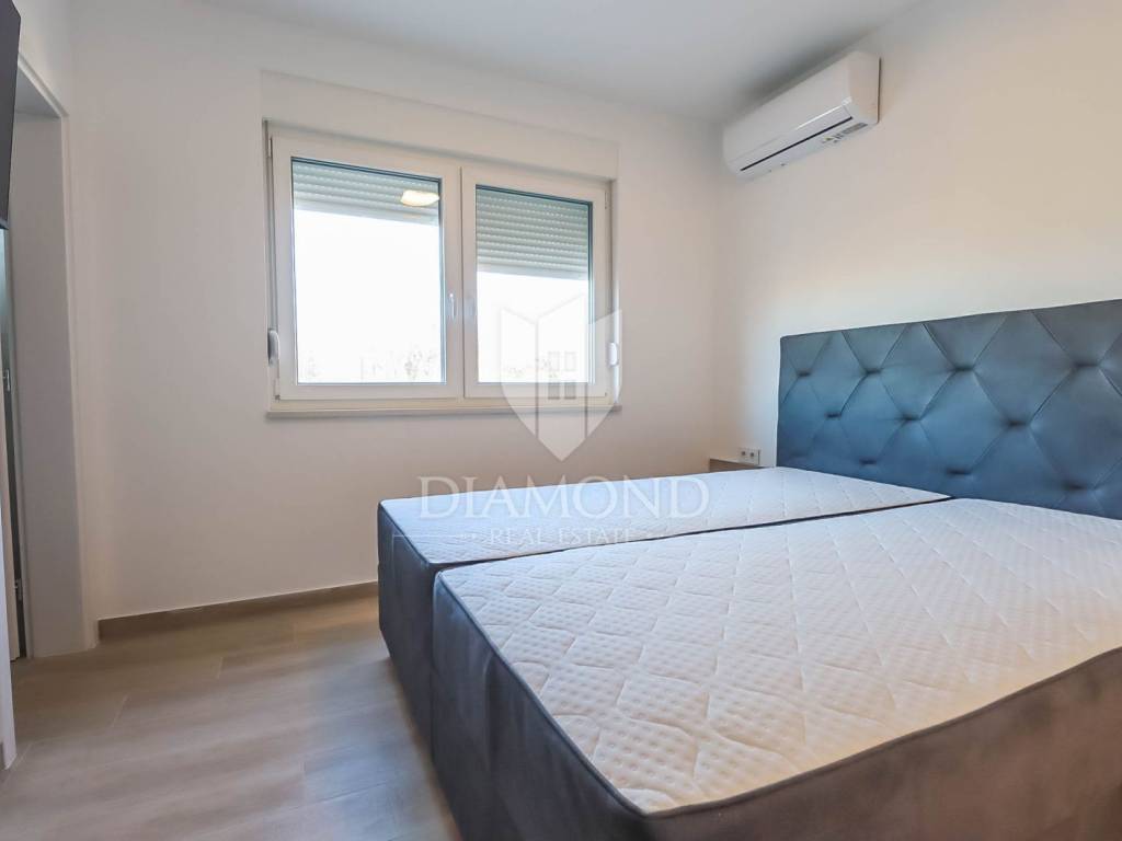 Ova prizemnica stambene površine 145m2 sastoji se od tri spavaće sobe sa vlastitim kupaonicama, velikog open space prostora u kojem je kuhinja sa blagovaonicom i dnevni boravak te još jedna kupaonica. Iz svijetlog dnevnog boravka se izlazi na bazen sa sunčalištem i na prostranu okućnicu sa odbojkaškim/badminton terenom i ljetnom kuhinjom. U sklopu okućnice nalazi se i natkriveni parking za dva automobila.