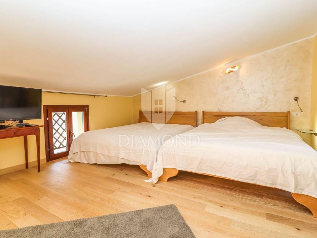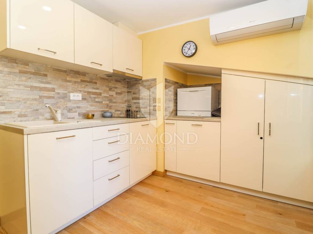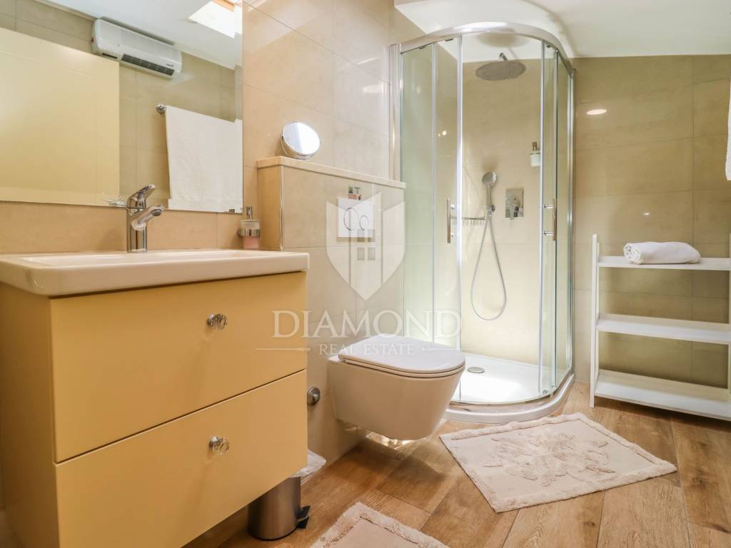 Sve je potpuno renovirano i uređeno prije dvije godine, te je korišten samo visokokvalitetni materijal i namještaj. Pazilo se na svaki detalj te se maksimalno iskoristio prostor. Sve su kuhinje rađene po mjeri, kreveti su od punog drva, vanjsko stepenište i dvorište je popločano kamenom. Postavljeno je podno grijanje u prizemlju dok studio apartmani imaju grijanje putem klima uređaja.