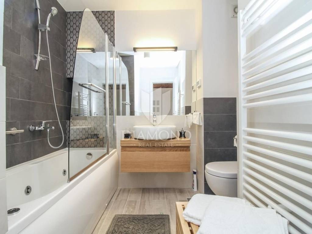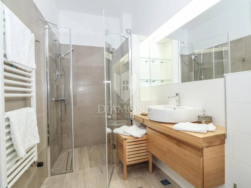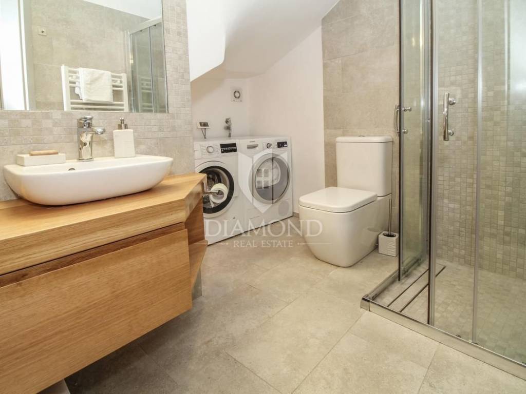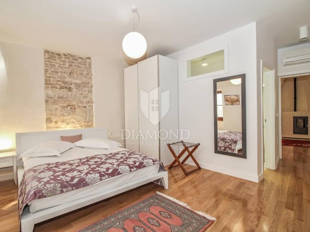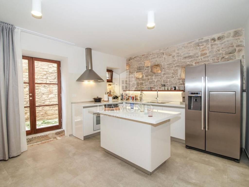 Ova kamena kuća se proteže kroz četiri etaže po 65m2, što rezultira ukupnom površinom od 260m2. Uređenje same kuće i unutrašnjosti je savršen spoj autohtonog i modernog stila. U prizemlju se nalazi moderna kuhinja sa otokom, prostrana blagovaonica te kupaonica. Na katu se nalazi dnevni boravak sa peći na pelete koja pruža poseban ugođaj pogledom na vatricu u zimskim mjesecima, te spavaća soba sa kupaonicom. Spomenuta peć je spojena na centralno te se grije cijela kuća, a uz to, sve površine koje su popločane imaju podno grijanje. Na katovima se nalaze još jedan dnevni dio, dvije spavaće sobe sa kupaonicama i jedna ugradbena kuhinja. Kuća ima pogled na more sa trećeg kata.