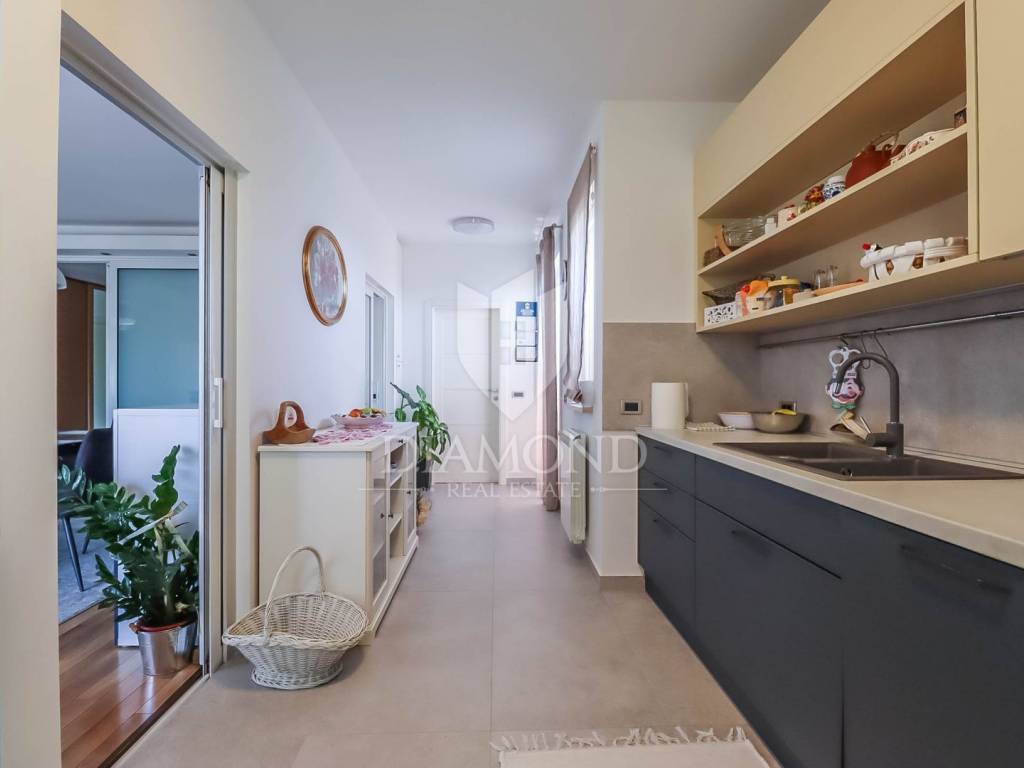 ovaj super novi stan nalazi se na cca tri kilometra udaljenosti od centra Rovinja što znači da se za samo par minuta vožnje možete naći u Starom Gradu koji obiluje šarmantnim kavanama, umjetničkim galerijama i skrovitim uskim uličicama. Stambena zgrada u kojoj se nalazi okružena je drugim stambenim kućama i zgradama te je u neposrednoj blizini svih sadržaja koji osiguravaju visoku kvalitetu života.