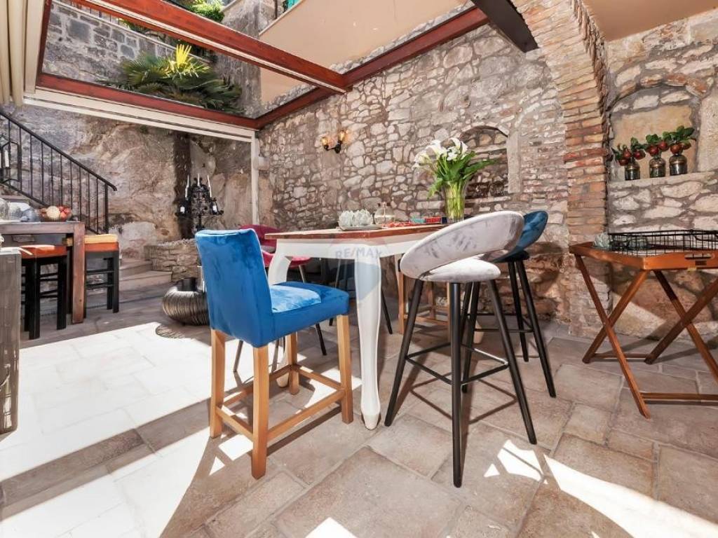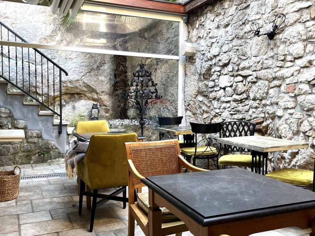 Nekretnina ima tri zasebna ulaza, koji čini strukturu neovisnu od poslovnog prostora od 20 m2, ugodnim caffe barom i direktnim ulazom u sobe.