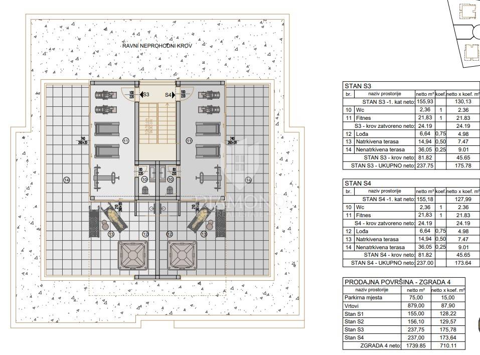 Ono što će vas i vaše goste neprestano oduševljavati nalazi se na vrhu zgrade, a to je ekskluzivna luksuzna zona. Zona sadrži vrhunski moderni jacuzzi, WC, teretanu i sunčalište te ljetnu kuhinju, idealno za opuštanje i rekreaciju uz prekrasan pogled na more i okolnu prirodu.