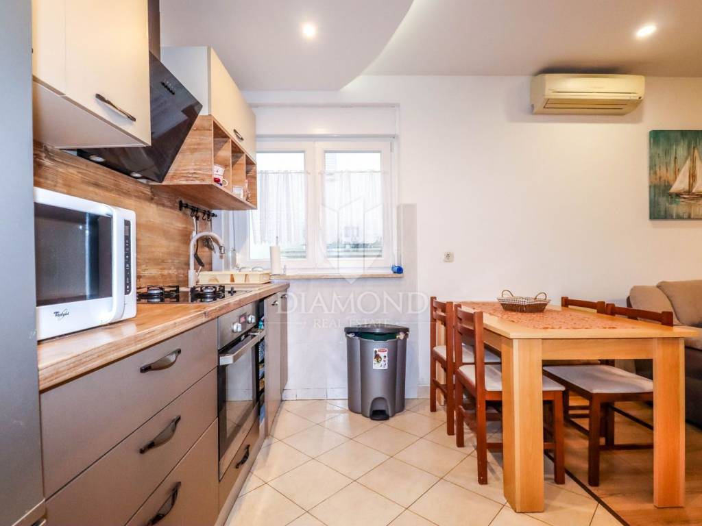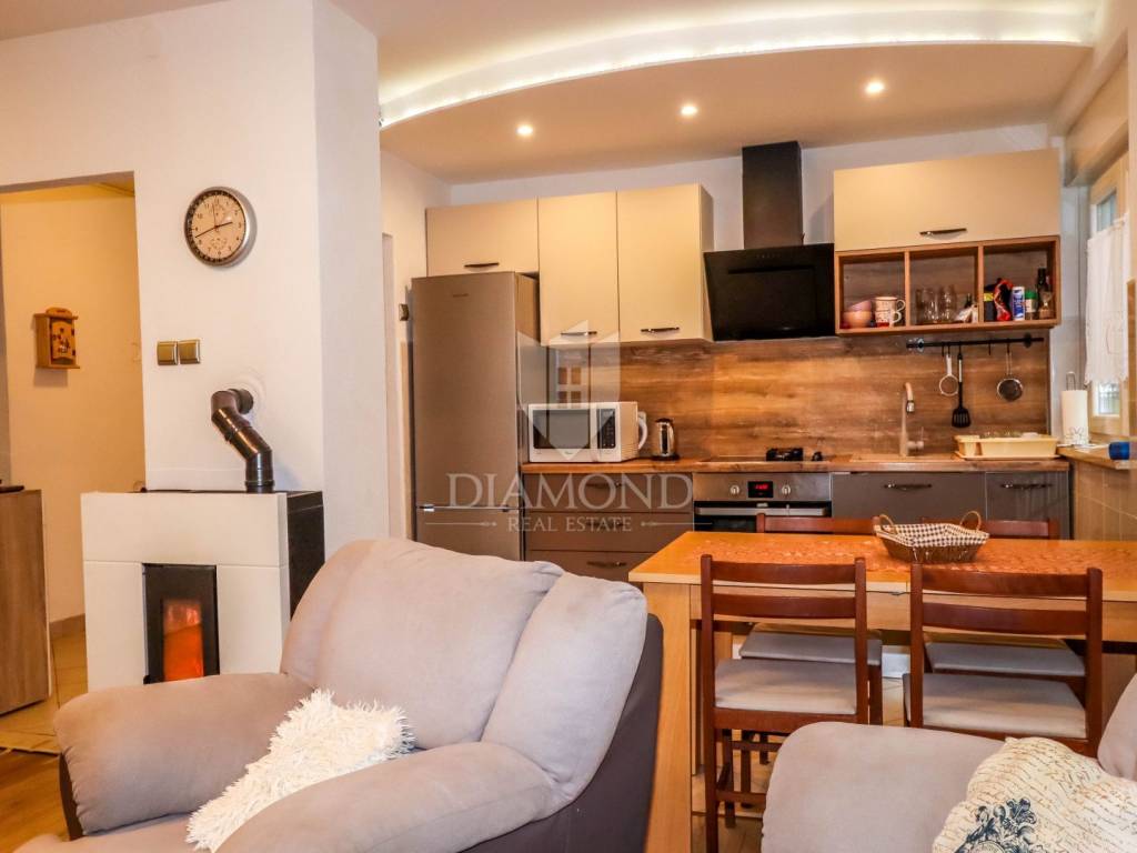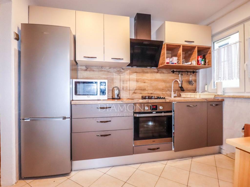 Stan od 70 m² smješten je u prizemlju kuće i dolazi s garažom od 15 m² koja uključuje sanitarni čvor. Prostrani dnevni boravak povezan je s blagovaonicom i kuhinjom u otvorenom konceptu, a izlaz na loggiu dodatno povezuje unutarnji prostor s eksterijerom. Dvije spavaće sobe i kupaonica čine ovaj stan funkcionalnim i ugodnim za boravak.