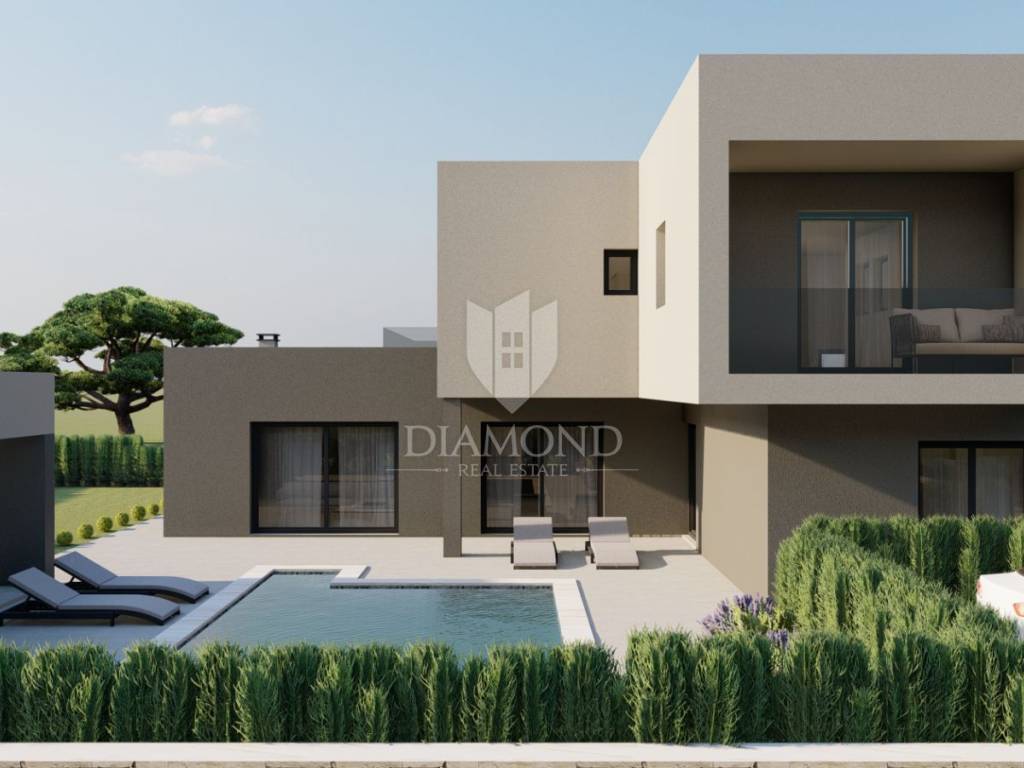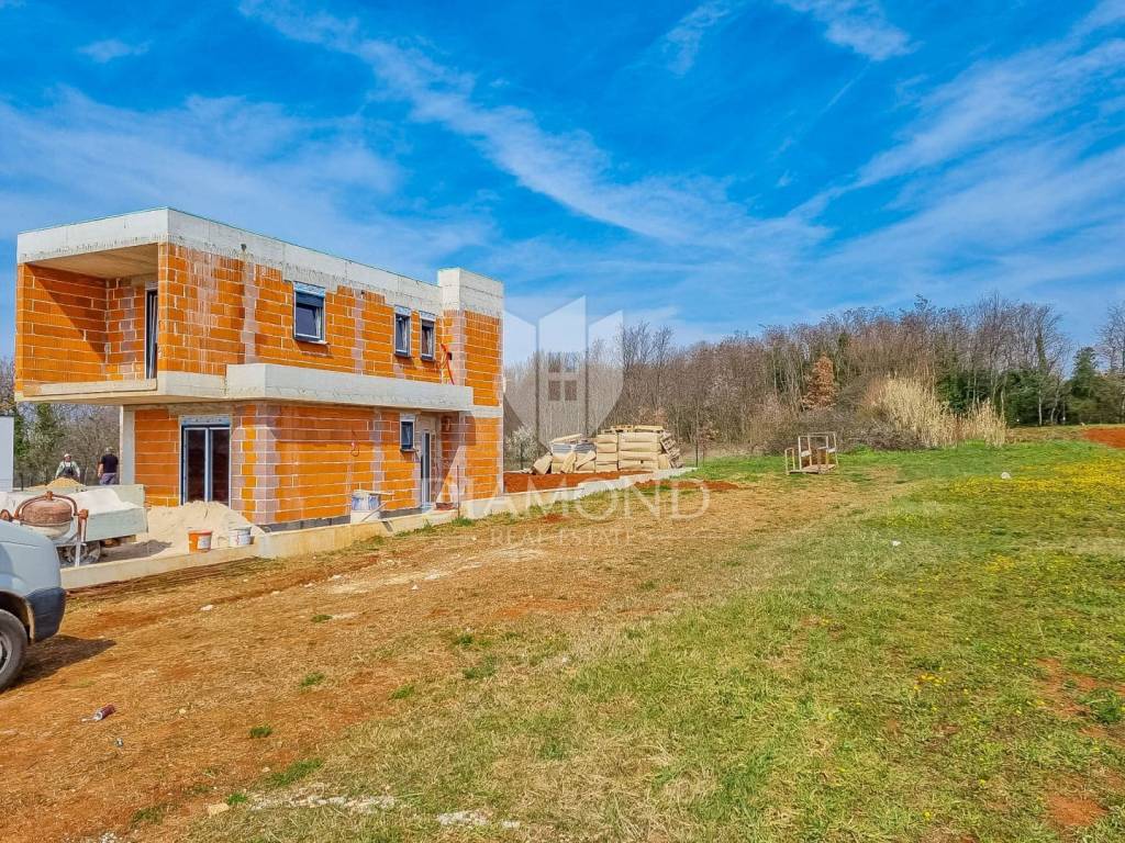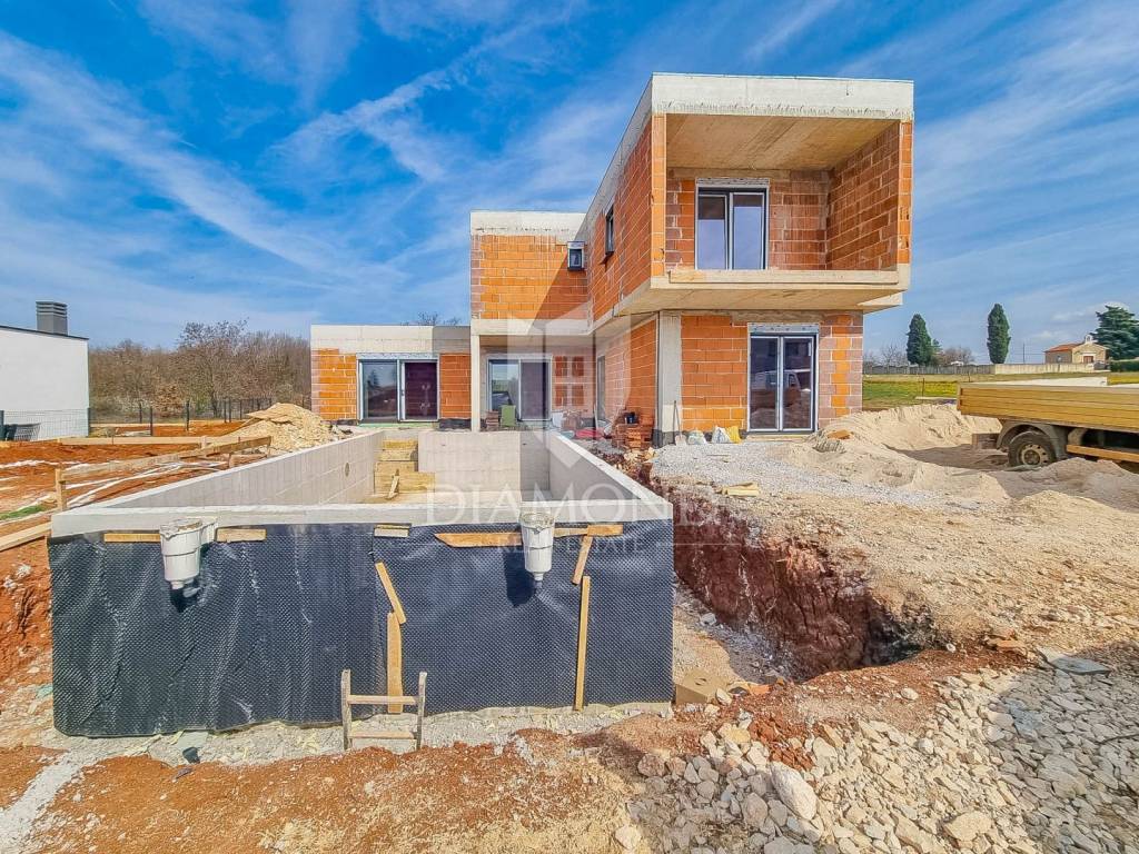 U manjem mjestu u zaleđu Poreča prodaje se ova atraktivna i moderna kuća u izgradnji sa bazenom!