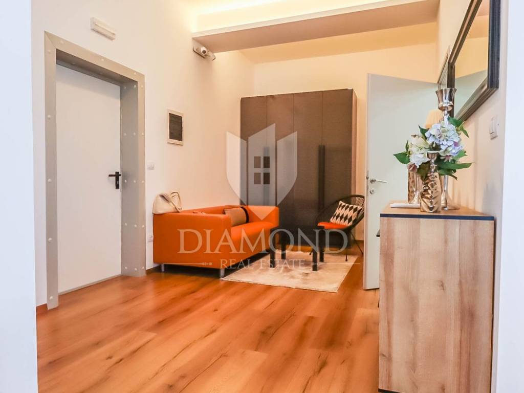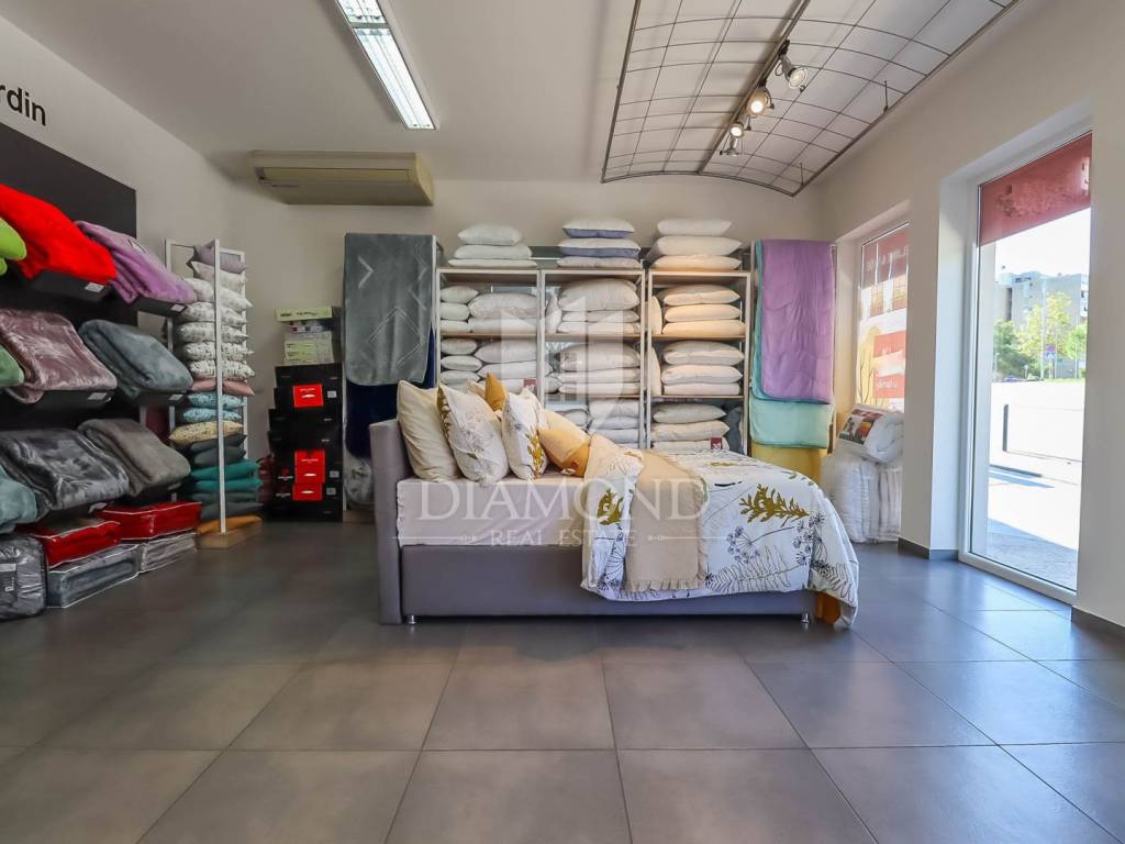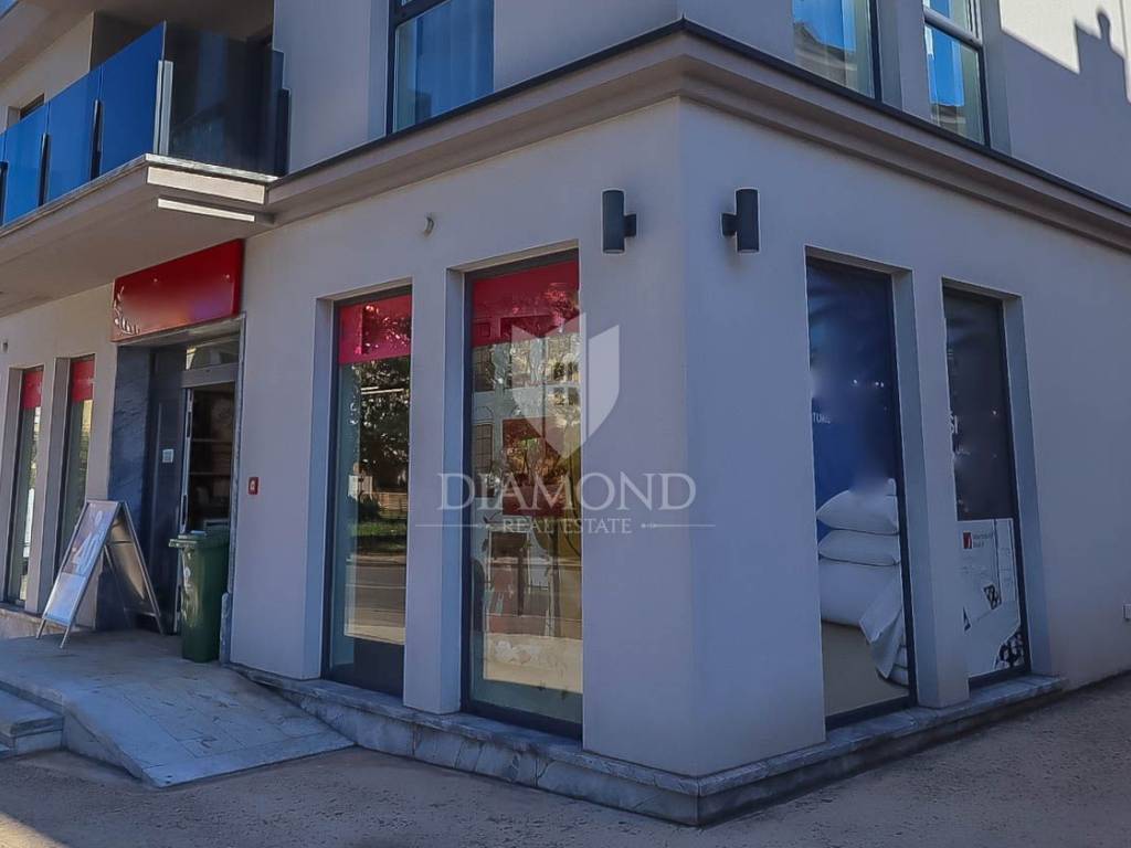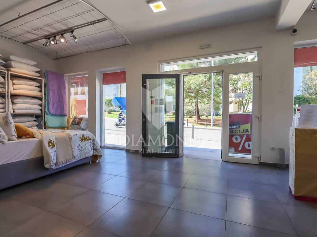 Ova nekretnina u principu jest spoj više prostora i proteže se na suteren i prizemlje ukupne kvadrature od 294m2 od kojih 19m2 pripada garaži u sklopu okućnice. U suterenu se nalazi pomoćni prostor a prema ideji sadašnjih vlasnika u nastanku je konoba koja bi služila za druženje s prijateljima i obitelji. U prizemlju se nalazi odličan i prostrani poslovni prostor, površine cca 85m2, orijentiran sa velikim izlozima prema frekventnoj ulici što osigurava da se proizvodi lako uoče te sam prostor bude dostupan za buduće kupce. U nastavku prizemlja se nalazi stan koji je orijentiran prema mirnom stambenom djelu i mirnoj ulici. Sastoji se od manjeg ulaznog hodnika, dnevnog boravka koji se spojen sa kuhinjom i blagovaonicom, dvije spavaće sobe , kupaonicom i gostinjskim wc-om. Iz dnevnog boravka pruža se Pogled na Pulu.
