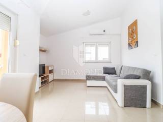 Kuća je građena na zemljištu veličine 163 m2 te se prostire kroz dvije etaže. Na svakoj etaži je jedan apartman sa zasebnim ulazom. Apartman u prizemlju se sastoji od dnevnog boravka s kuhinjom i blagovaonicom, spavaćom sobom, kupaonicom i prostranom terasom veličine 18m2. Unutarnjim stubištem dolazi se do drugog apartmana istog rasporeda prostorija te balkonom s pogledom na more. U svim prostorijama su pločice, osim spavaćih soba u kojima je postavljen laminat. Oba apartmana su klimatizirana. Okućnica je cijela popločena kamenom i djelomično ograđena. Unutar okućnice ima mjesta za tri vozila, a iza kuće može se dograditi roštilj.